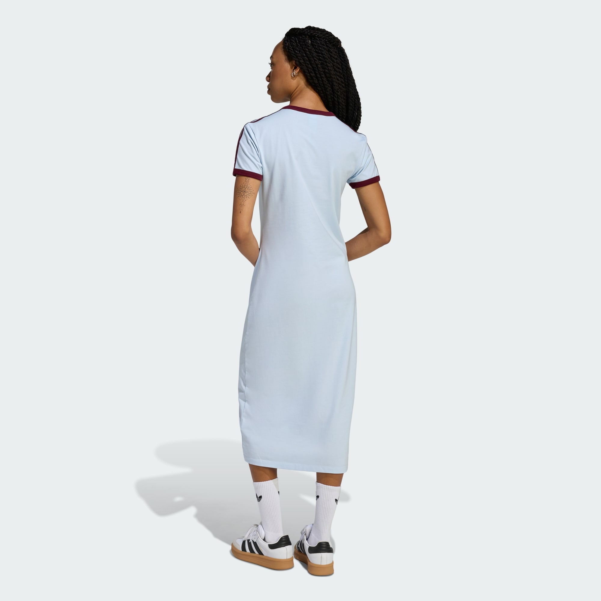 Slim 3-Stripes-kjolen er der klassisk Adicolor-stil møter moderne stil. Enten du setter kurs for avslappede aktiviteter eller kvelder ute, tilpasser denne kjolen seg uanstrengt til stilen din. Denne lages for alle som vet å sette pris på ikoniske 3-Stripes, med en slank passform som fremhever silhuetten din samtidig som den hjelper deg med å føle deg komfortabel. Den runde halsen med Performance Running-branding på innsiden leverer en subtil detalj som løfter helhetsinntrykket. Stoffet lages av en blanding av bomull og elastan, som er mykt og fleksibelt å bruke. Med konstruksjon i enkelt-jersey har du med deg slitesterk komfort, og denne kjolen viser frem engasjementet for kvalitet og stil. Med adidas handler det om mer enn bare fritidsklær. Det handler om en livsstil. Omfavn den livlige ånden til Adicolor-kolleksjonen, og bygg et dristig stiluttrykk uansett hvor du går.