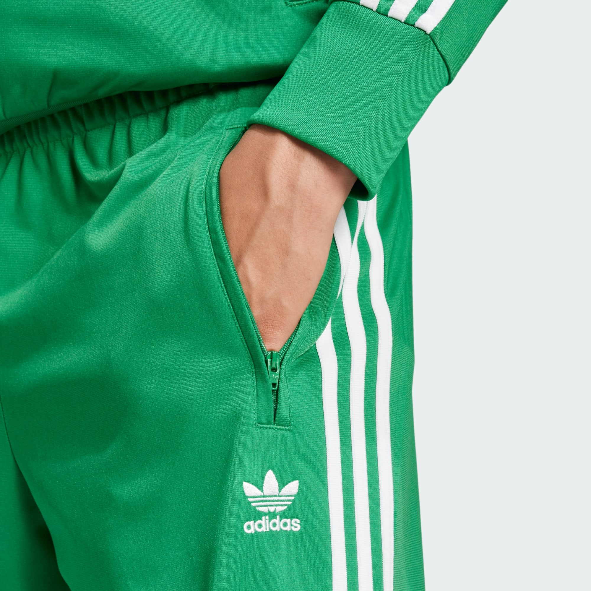 En klassisk stil får Adicolor-behandlingen. Dette basisplagget har den ikoniske Firebird-stilen du kjenner og elsker, men med et moderne snitt og en frisk palett. Den broderte Trefoil-logoen på den ene siden og 3-Stripes nedover bena er ekte adidas-DNA, og strammesnoren på det elastiske livet sørger for riktig passform. Glidelåslommene har plass til de viktigste tingene, så du kan ta fatt på dagen. Minst 70 % av dette produktet er en blanding av resirkulerte og fornybare materialer.
