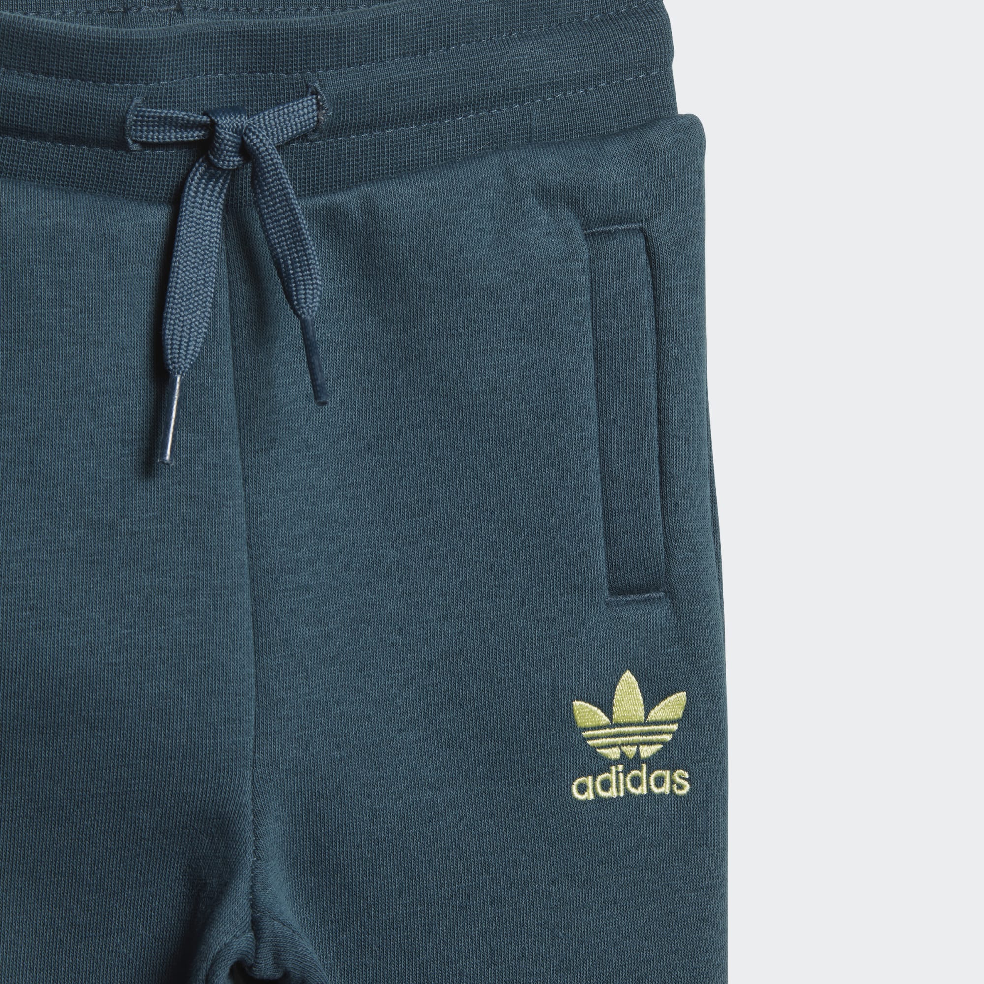 For de minste handler alt om å utforske. Dette settet for småbarn lages for å holde dem komfortable gjennom alle slags eventyr. Fleece-stoffet pakker dem inn i en myk følelse fra topp til tå. Trefoiler foran og på sidene signerer det autentiske adidas-uttrykket.