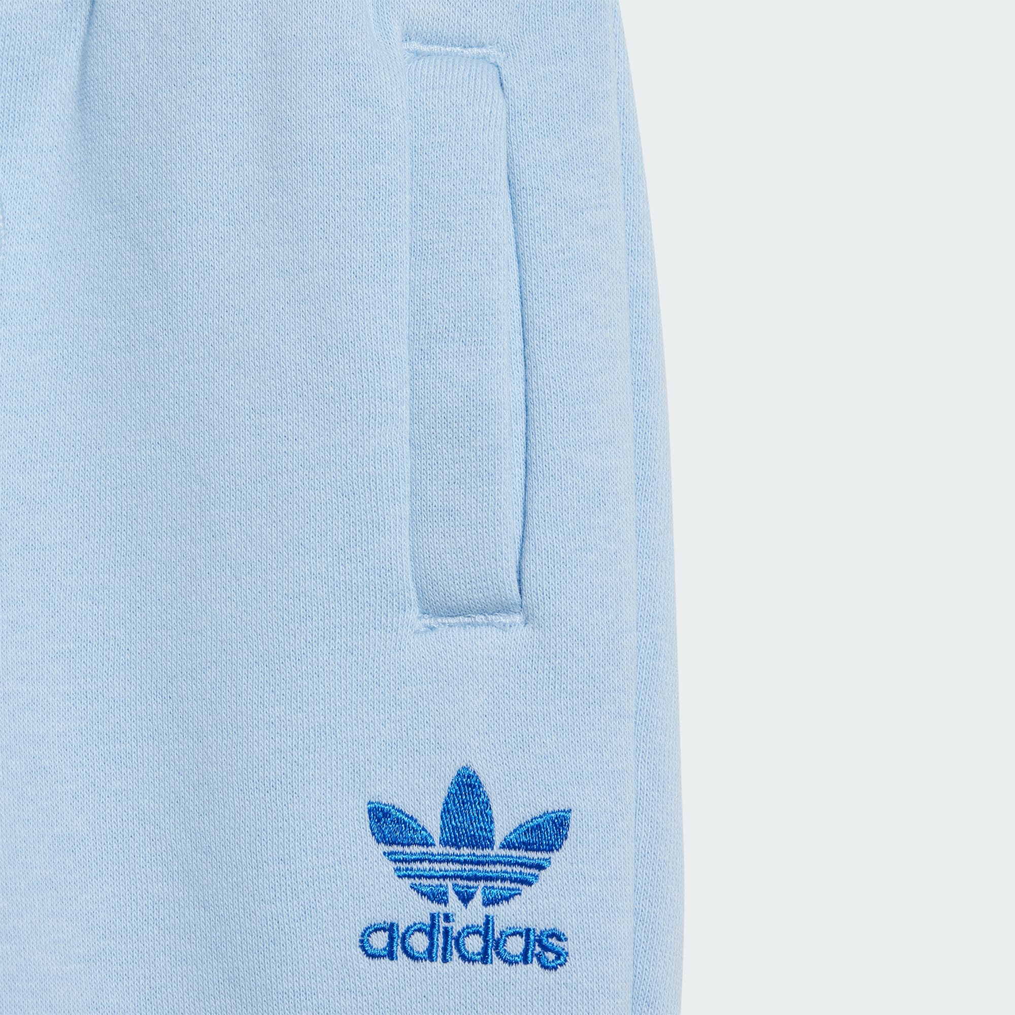 For de minste handler alt om å utforske. Dette settet for småbarn lages for å holde dem komfortable gjennom alle slags eventyr. Fleece-stoffet pakker dem inn i en myk følelse fra topp til tå. Trefoiler foran og på sidene signerer det autentiske adidas-uttrykket.