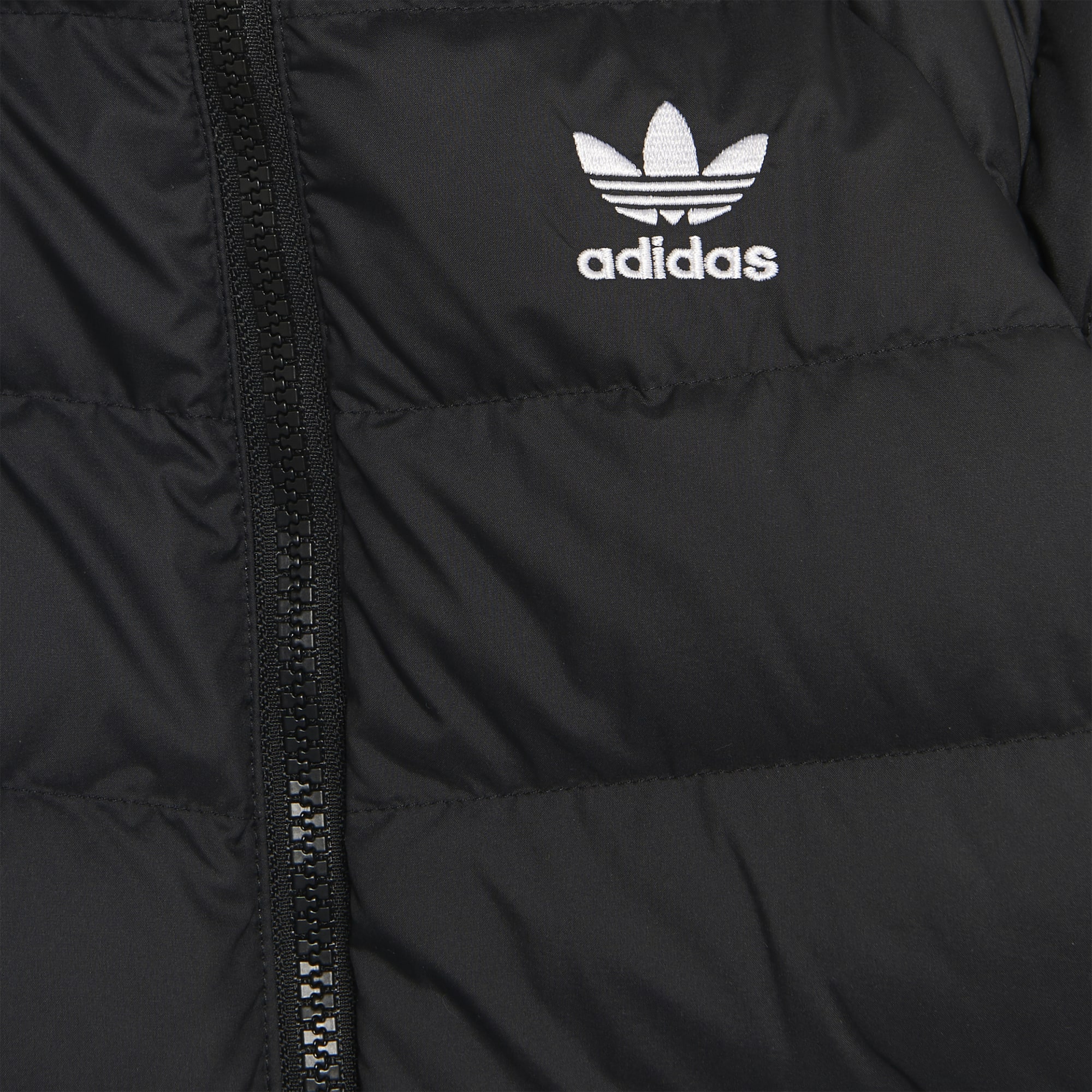 Finnes det noe bedre enn en innpakket baby? Nei, det gjør det ikke. Så pakk inn den lille i denne dunjakken, og kos deg med nabolagets søteste. En avtagbar hette lar deg tilpasse passformen. En Trefoil-logo skiller seg ut i et sporty uttrykk. Dette produktet lages med Primegreen, en serie høytytende, resirkulerte materialer.