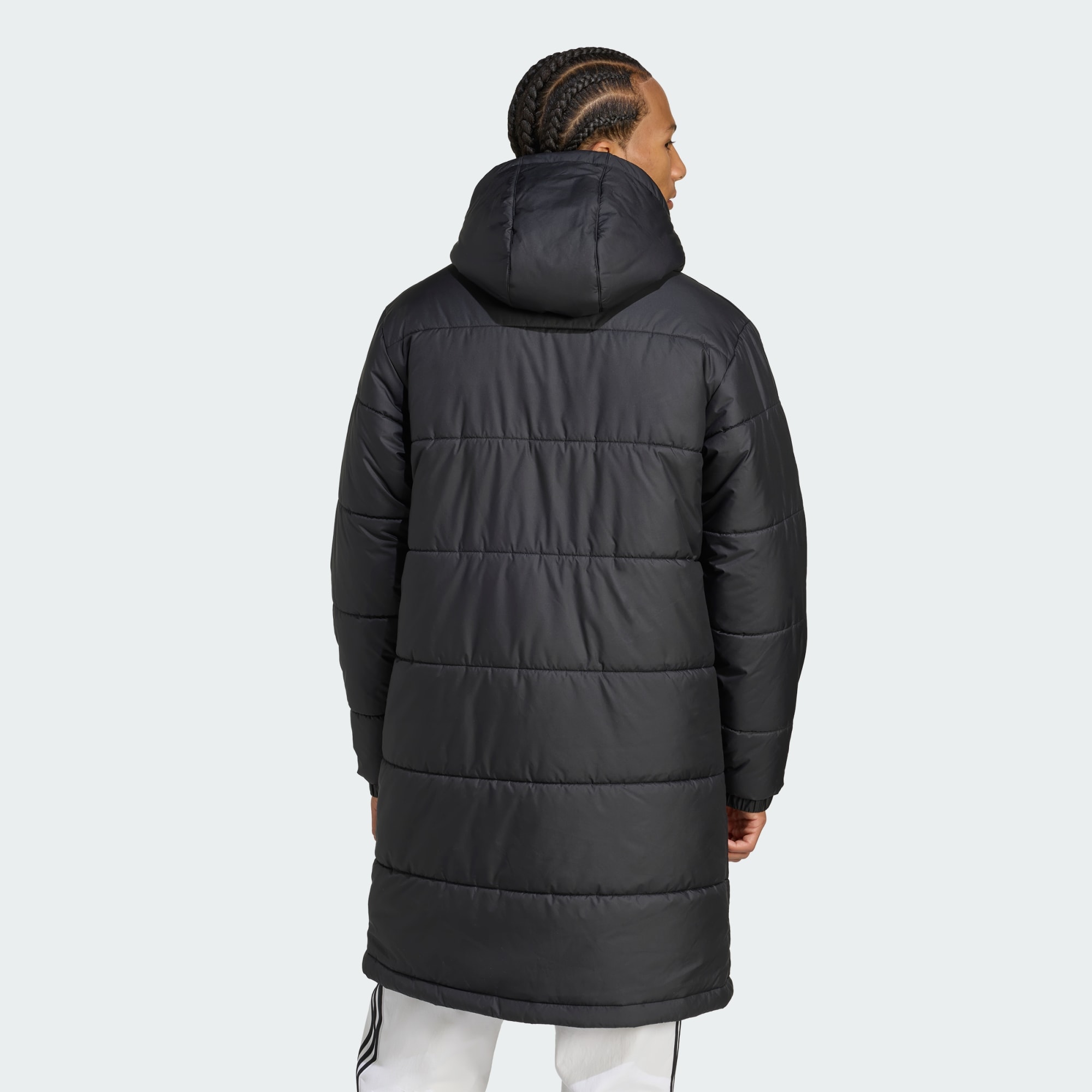 Denne adidas-jakken gjenspeiler opplevelsen av å ligge i sengen på kalde dager. Når temperaturen faller, omslutter den lange silhuetten, kanalstikking og formet hette deg med varme og komfort. Den kan pakkes sammen, så du kan ta med deg godfølelsen uansett hvor du er på vei. Minst 70 % av dette produktet er en blanding av resirkulerte og fornybare materialer.