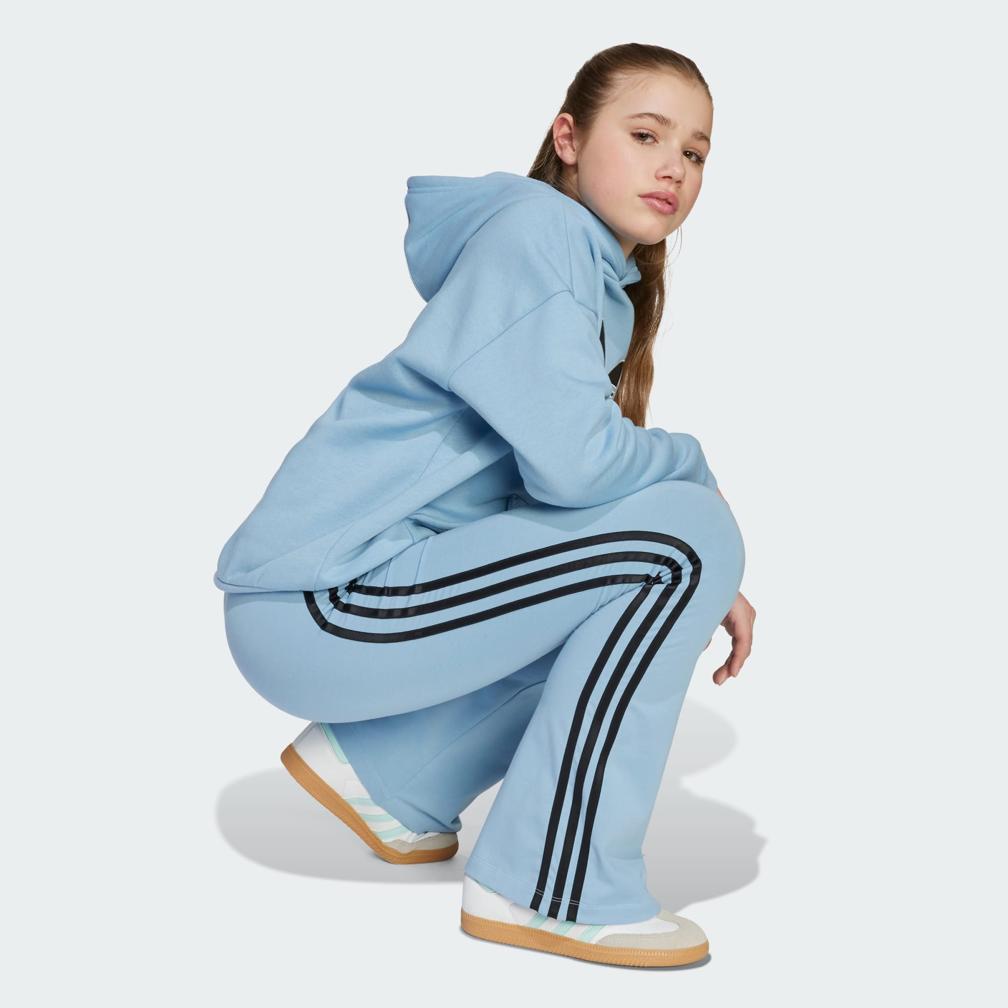 Hold det avslappet men likevel kult, i denne tightsen for juniorer. Det myke og elastiske stoffet lages av strikket enkelt-jersey, og omfavner kurvene dine og signeres med utsvingte ben, til å bli en flatterende og komfortabel passform. Kontrastfargede 3-Stripes går nedover begge bena, kombinert med Trefoil-logoen for å gjøre sportsarven tydelig.