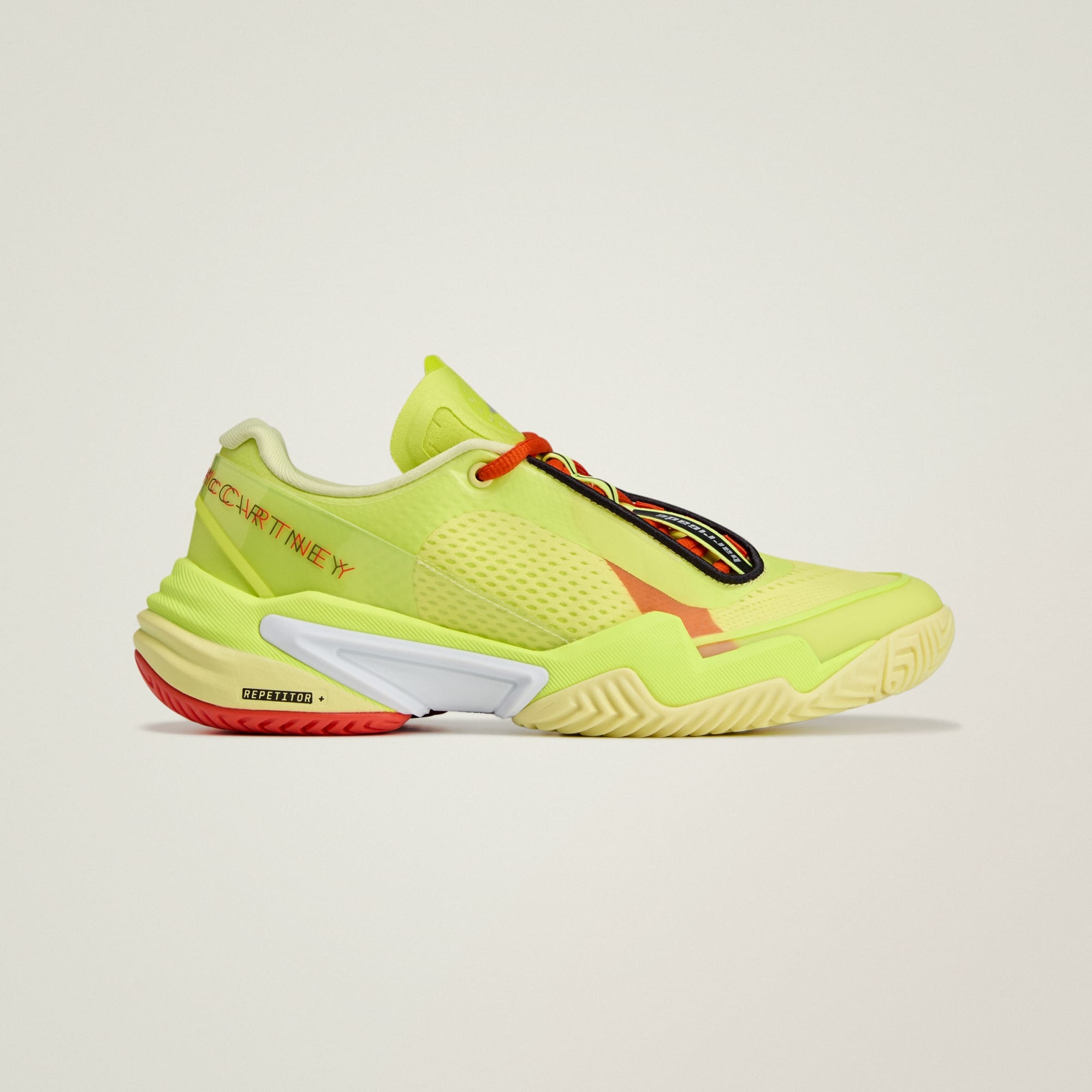 Ta kontroll på banen i disse adidas by Stella McCartney Barricade-tennisskoene, laget med dobbel mesh-konstruksjon. Torsion System sørger for stabilitet med potensiale for å snu kampene, og den asymmetriske snøringen holder føttene på plass gjennom kjappe manøvre og finter. REPETITOR-mellomsålen sørger for støtte og jevne overganger fra det ene steget til det neste. Vi merker bare produkter som laget med veganske materialer, hvis de tidligere ble laget med skinn, semsket skinn eller dun. Dette veganske produktet inneholder minst 20 % resirkulerte materialer.