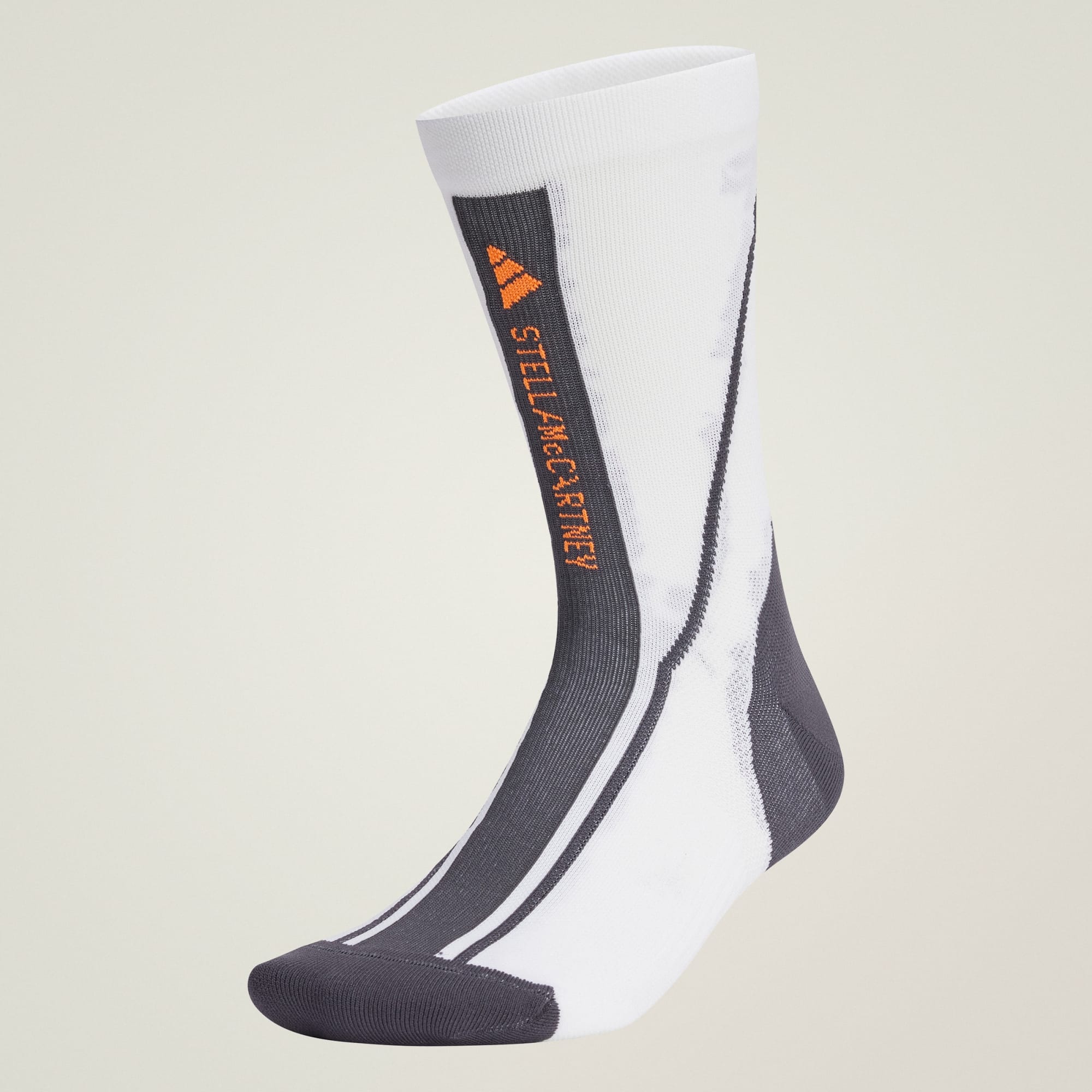 Når du trener skal du ikke trenge å tenke på sokkene dine. De skal være så komfortable at du glemmer at de er der, og de skal gjøre sitt beste for å støtte opp om innsatsen din. Det er nettopp det disse mellomhøye sokkene fra adidas by Stella McCartney har med seg. Fotbuestøtten former tåen, hælen og fotbuen, og den dempede fotsengen gir deg et mykt sted å lande. AEROREADY bidrar til å holde føttene dine kjølige og tørre, selv når svettefaktoren er høy. Disse sokkene konstrueres uten ingredienser fra dyr, og er myke, elastiske og tettsittende nok til å holde seg akkurat der de skal være. For å redusere mengden nyproduserte materialer, sørger vi for at de veganske alternativene våre også inneholder minst 25 % resirkulert materiale.