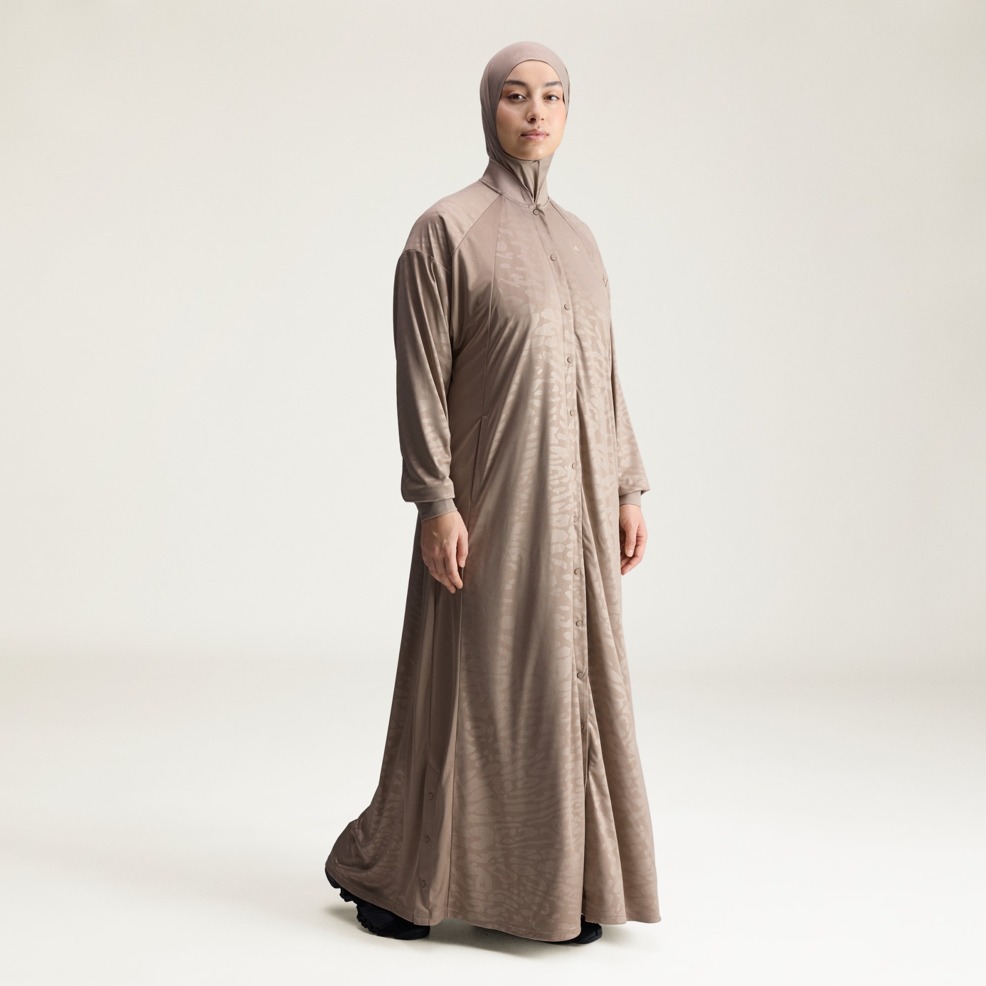 adidas by Stella McCartney-hijaben med undercap designes for kvinner som omfavner både stil og ytelse, konstruert for å støtte opp om den aktive livsstilen din. Enten du trener hardt eller tar en avslappet dag utendørs, kommer denne hijaben med en blanding av komfort og mote. Hijaben har strammesnor for justerbarhet, slik at du kan finne den rette passformen for deg. Med premium materialer får den en normal passform som hverken er for trang eller for løs, og som hjelper deg med å føle deg ubegrenset i bevegelsene dine. Det diskret pregede leopardtrykket gir en følelse av eleganse, mens forseglede kanter har en elegant finish. Den matchende undercapsen signerer antrekket og gir ekstra dekning. Med denne adidas-hijaben kan du bevege deg med selvtillit og styrke, vel vitende om at du har på deg et plagg som kombinerer høy ytelse og funksjonalitet med et attraktivt design.