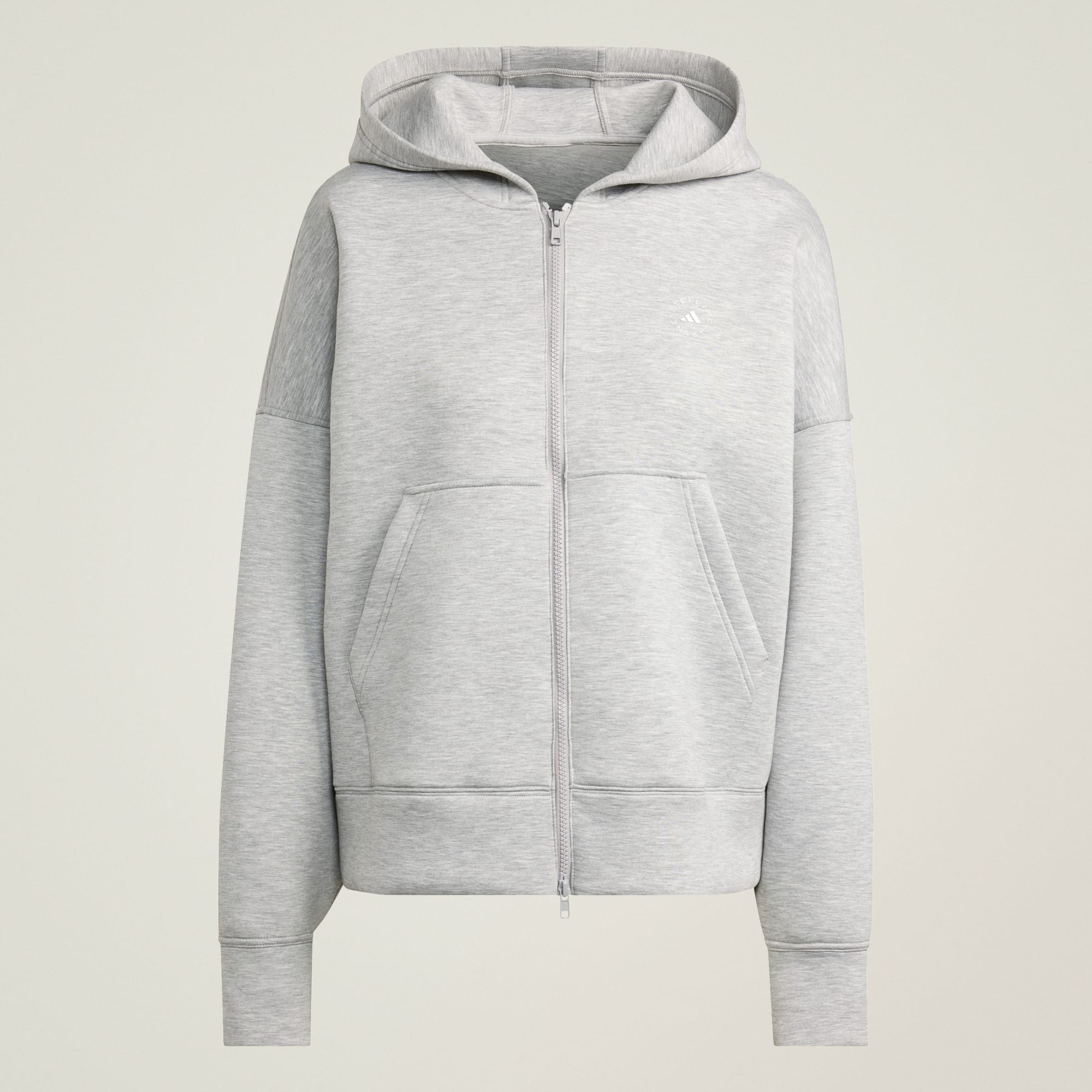 Det myke scuba-stoffet i denne hettegenseren fra adidas by Stella McCartney omslutter deg i luksuriøs godfølelsen hver gang du tar den på, mens den løse passformen sørger for ubegrenset bevegelsesfrihet på aktive dager. Subtile designdetaljer som Stella-logotrykket med høy tetthet gir et opphøyet preg. Ta på deg denne hettejakken til morgen-yogaen eller når du løper ærender i helgen.
