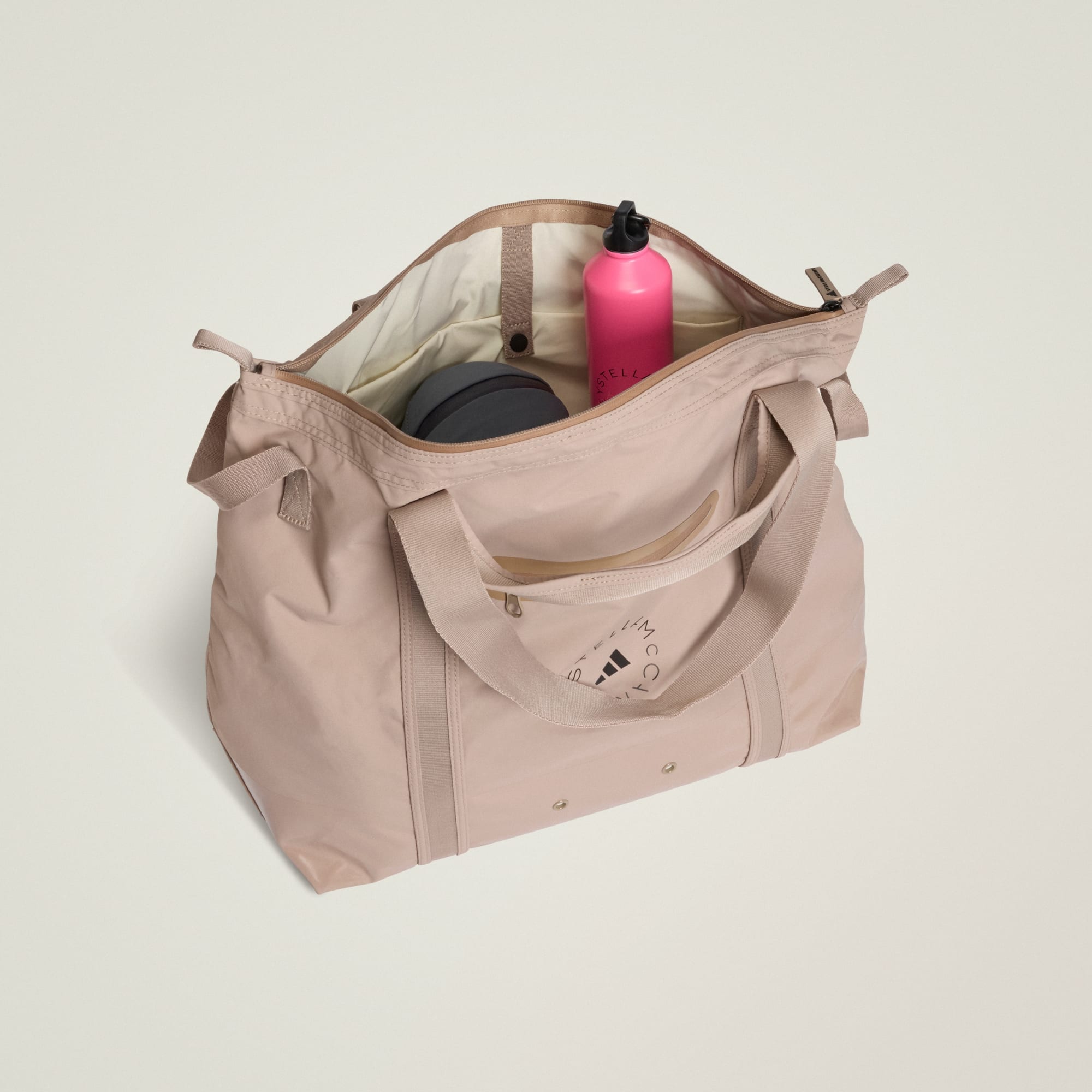 adidas by Stella McCartney Tote-bagen er din følgesvenn når det gjelder både stil og praktisk bruk. Enten du skal på treningssenteret eller utforske byen, er denne tote-vesken designet for å holde tritt med din aktive livsstil. Den har et romslig hovedrom med glidelås for enkel tilgang til dine viktigste ting. Innvendig finner du et laptop-lomme og flere rom for sømløs organisering. Med tre forskjellige bærehåndtak, inkludert polstrede alternativer, tilbyr designet både komfort og allsidighet. Bunnpanelet har et vannavstøtende belegg som bidrar til å holde eiendelene dine tørre gjennom lette regnbyger. Den utendørsinspirerte knyttede nøkkelringen gir antrekket ditt et snev av eventyr. Denne totebagen en del av aSMC Workout Wardrobe Collection, designet for å heve hverdagsgarderoben din med funksjonell stil.