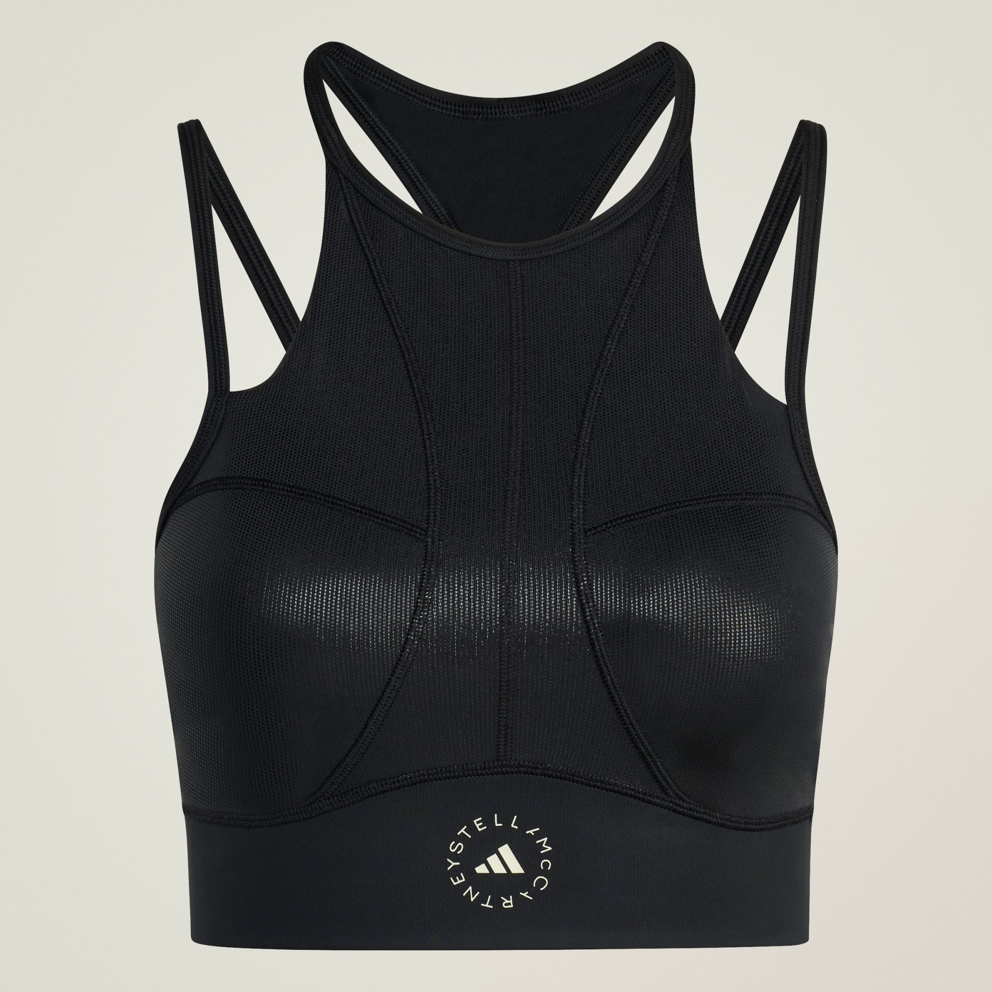 Tren med selvtillit og stil, i denne avkortede adidas by Stella McCartney-toppen. Denne crop-toppen blander ytelse og luksus med premium glinsende stoff, og diskret trykk i mikroprikkfolie. Kjenn på bevegelsesfriheten mens du flyter gjennom solhilsener eller spurter på tredemøllen, med lette og uttagbare puter som gir dekning sammen med kryssende ryggstropper som holder seg på plass.