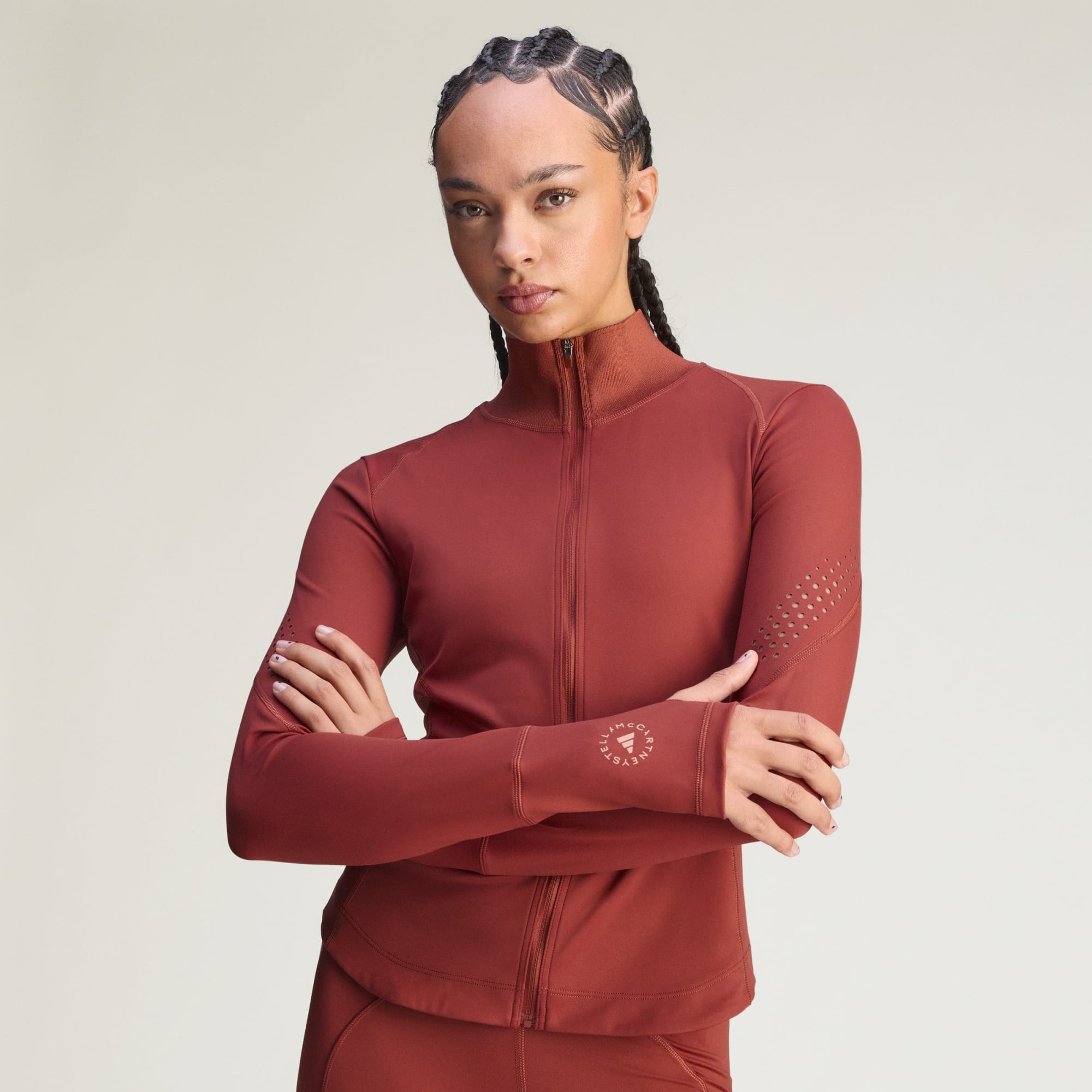 Gjør deg klar for trening med selvtilliten på topp i adidas by Stella McCartney Training Midlayer-jakken. Dette mellomlaget designes for alle som omfavner styrke og mykhet, og følger bevegelsene dine sømløst enten du presser deg gjennom høyintensive treningsøkter eller kjøler ned i studioet. Adisoft Luxe-materialet gir supermyk og lett støtte for en suveren følelse. Ultraglatt følelse møter ytelse med tilsatt Lycra® Adaptiv™ for finjustert passform og komfort, og skaper en kroppsnær følelse som tilpasser seg kroppen din. Den elegante silhuetten og smal passform kombineres med høy hals og glidelåslukking gir en tettsittende passform. Tommelhull og laserskårne detaljer på ermene kompletterer designet og gir både komfort og stil under treningsøktene. Stella-logoen setter prikken over i-en på utseendet, kommer med en elegant følelse. Omfavn balansen mellom ytelse og estetikk med dette plagget som kommer som en del av True Purpose-serien, og opplev utviklingen av treningsplagg. Det er her innovasjon møter bærekraft – og dette mellomlaget er ikke noe unntak. Ta activewear-kolleksjonen din opp et nivå med et plagg som støtter reisen din, og samsvarer med verdiene dine.