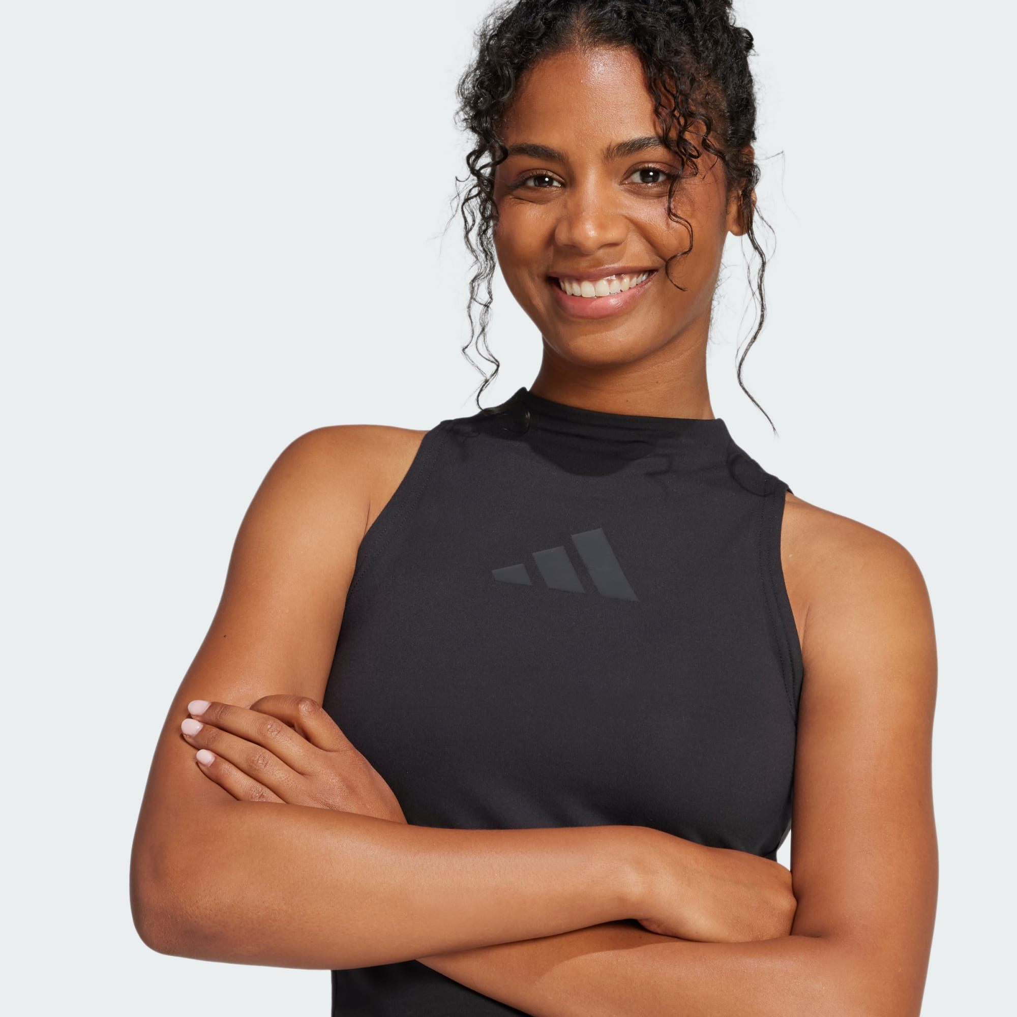 Å være aktiv skrur opp lykken. Det er rett og slett fakta. Denne adidas-tanktoppen lages av elastisk, strikket materiale som er enkelt å bevege seg i, så du kan komme deg ut og pumpe endorfinene. Vannavstøtende, hydrofil utførelse gir en ekstra myk følelse. Den smale passformen og halvpolokragen gir den en moderne silhuett. Dette produktet lages med minst 70 % resirkulerte materialer. Ved å gjenbruke materialer som allerede er produsert, bidrar vi til å redusere avfall og avhengigheten vår av begrensede ressurser, og reduserer fotavtrykket til produktene vi lager.