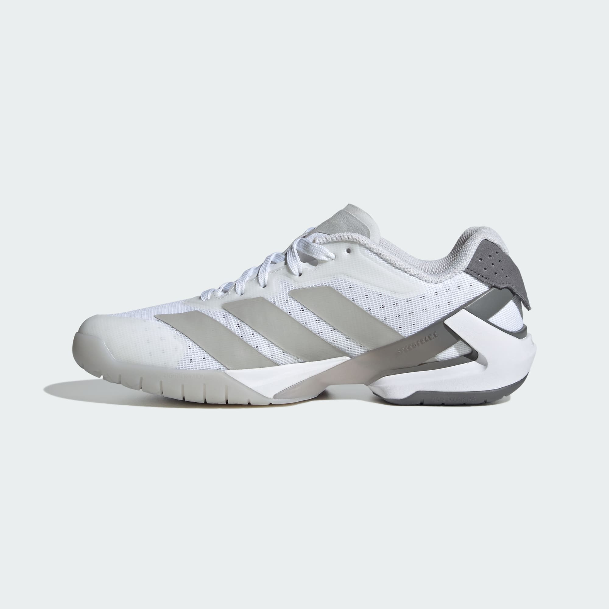 Ingenting kommer seg forbi deg på innendørsbanene når du har på deg et par av disse lette Adizero Counterblast-skoene fra adidas. Ved å sette sammen en luftig overdel av mesh med en lav Lightstrike-mellomsåle, sikrer de at du alltid kommer kjapt opp i fart. Speedframe-chassissystemet og gripesikker traxion™-yttersåle utmerker seg når du trenger å endre retning på et øyeblikk.