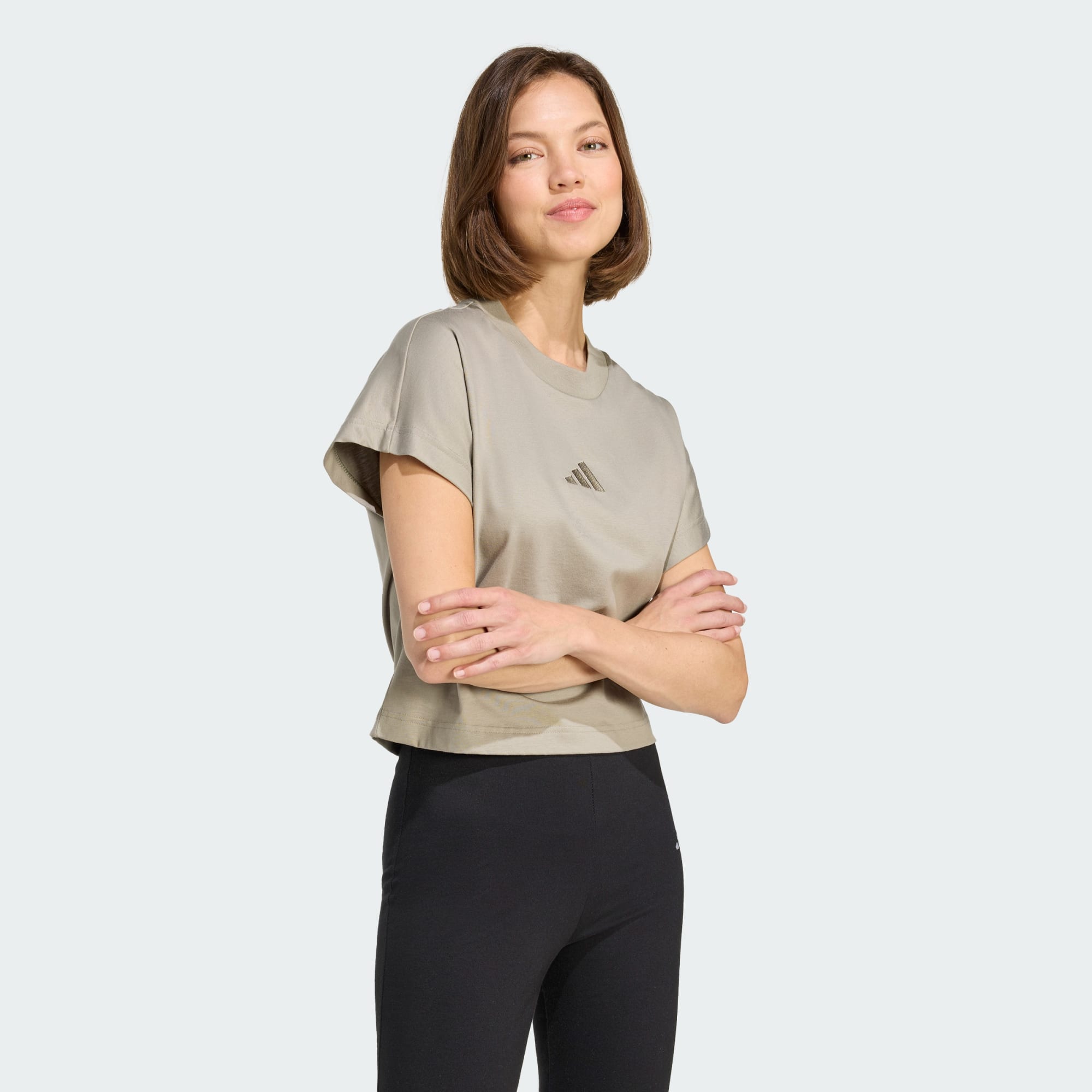 Denne adidas-t-skjorten leverer hverdagskomfort til aktive dager, uten å ofre stilen. Denne t-skjorten er laget av mykt jersey-materiale i bomull, og er perfekt for alt fra helgeturer til kaffedater. En brodert logo tilfører en diskret signatur.