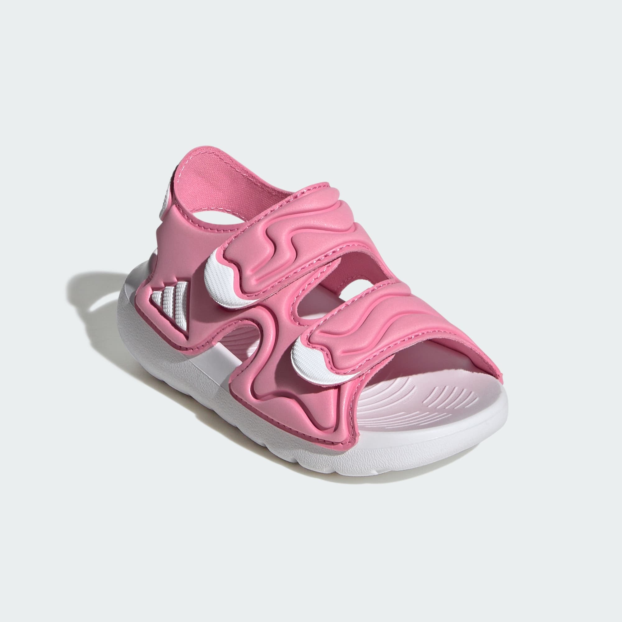 Altaswim 3-sandalene designes for å være med på all sommermoro som barna finner på. Enten det er plasking ved bassenget eller lek på stranden, kommer disse sandalene med komfort og stil. Med den hurtigtørkende overdelen hjelper sandalene de små føttene med å holde seg tørre og komfortable fra dag til dag. De to justerbare stroppene kommer med en sikker passform, noe som gjør dem enkle å ta av og på i travle lekestunder. Den dristige adidas-logoen på siden av disse sandalene er et blikkfang, mens det livlige designet appellerer til barna. Foreldre kommer til å sette pris på hvor praktiske de er, så vel som det klassiske utseendet. Med konstruksjon som passer for utendørs overflater, inviterer disse til å nyte sommereventyrene. I disse sandalene er hvert steg et plask av moro for barna.