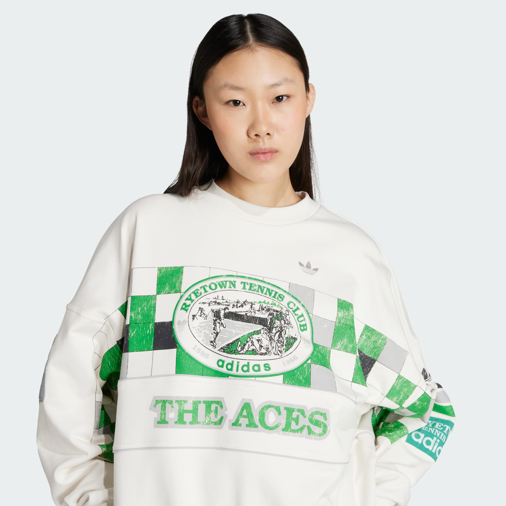 En moteriktig, overdimensjonert overdel, inspirert av vintage tennisklær.