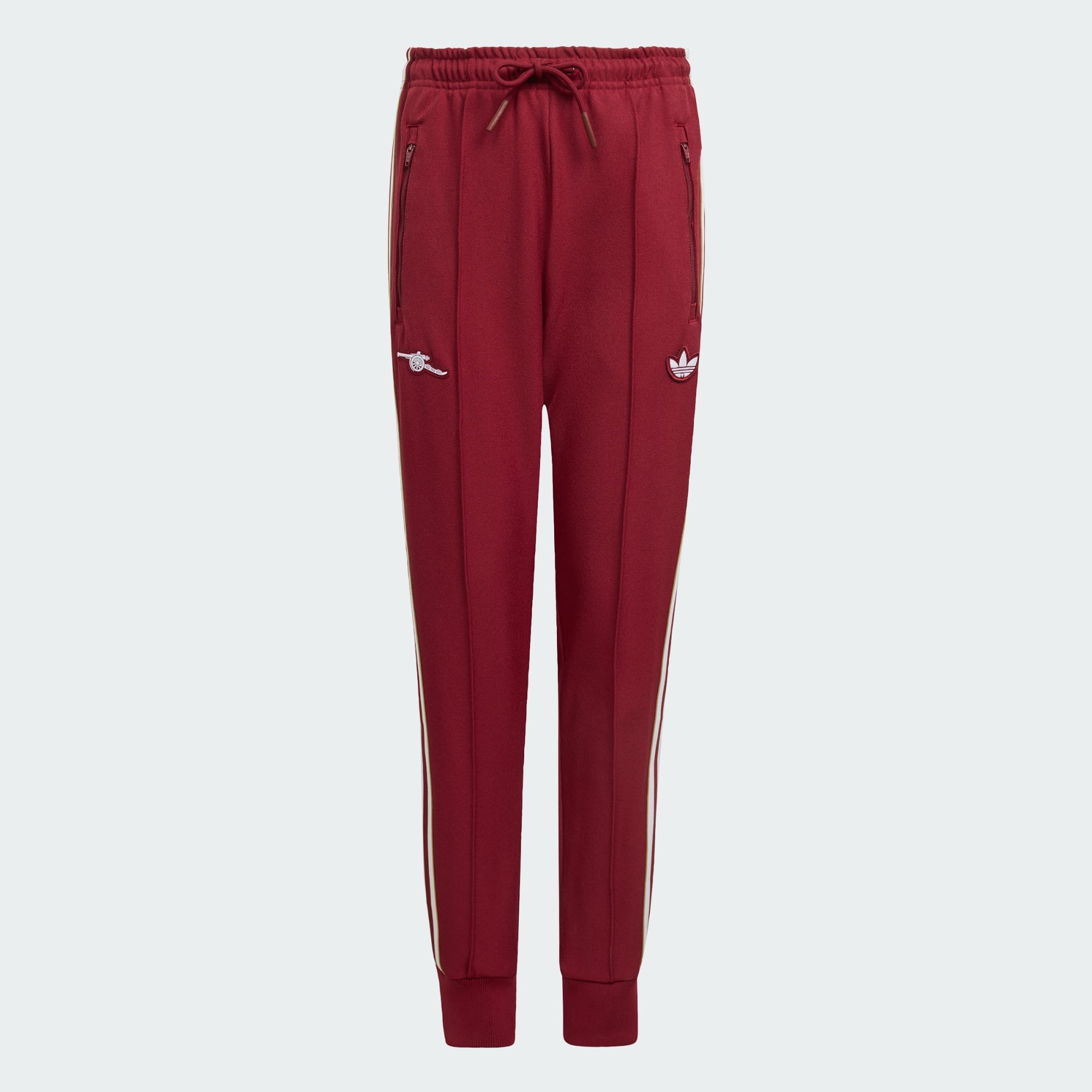 Legg til litt stil fra forrige århundre i kampantrekket ditt. Denne adidas Arsenal-treningsbuksen lages for juniorer, og henter inspirasjonen sin fra 80-tallet, da fotballmoten var konge. Den har smal passform og ribbestrikkede mansjetter, for å holde seg på plass mens du er på farten. Brodert Trefoil-logo og klubbmerke gir et retro utseende som sørger for at du skiller deg ut fra mengdene.