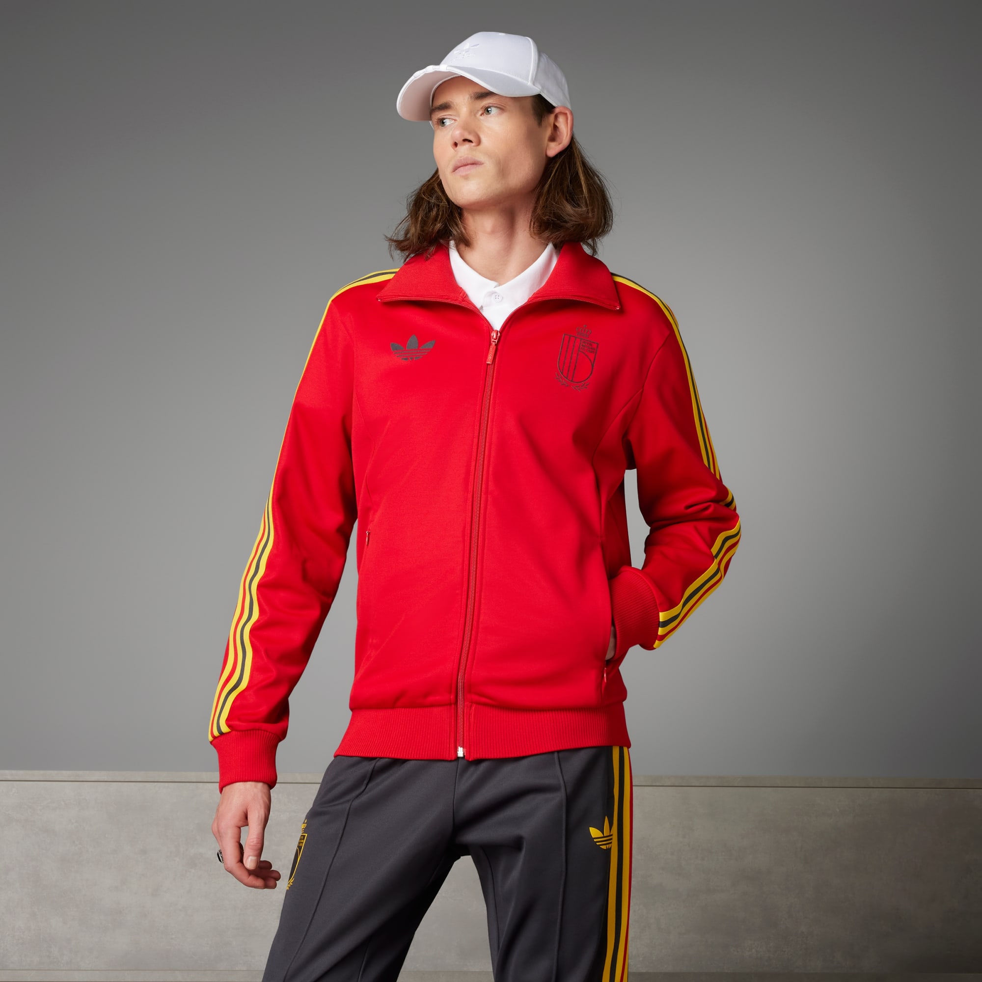 Enten du heier fra sidelinjene eller tar det med ro hjemmefra, viser Belgia Beckenbauer-treningsoverdelen frem lagfargene med stolthet. Treningsoverdelen henter inspirasjon fra ikonisk arkiv-design, med mykt stoff av bomullsblanding som sørger for komforten uansett hvor du er. Fremtredende 3-Stripes-detaljer og forbundsemblemet viser frem sportsånden din. Glidelåslommene har masse plass til de viktigste tingene, så du går aldri glipp av det som skjer på banen. Ved å velge resirkulerte materialer, kan vi gjenbruke materialer som allerede er laget, noe som bidrar til å redusere avfall og avhengigheten vår av begrensede ressurser.