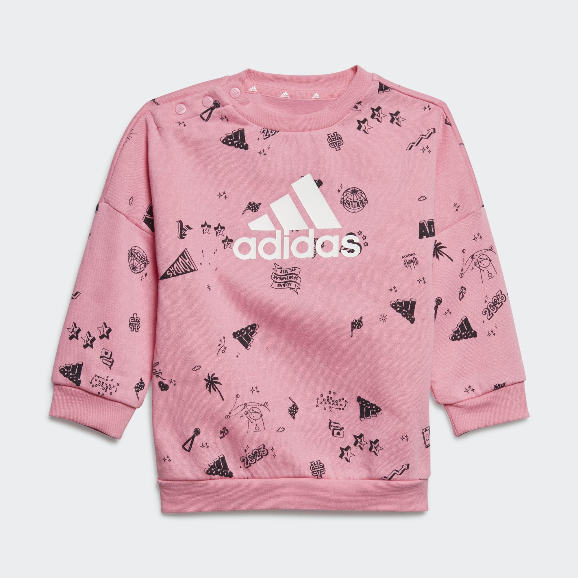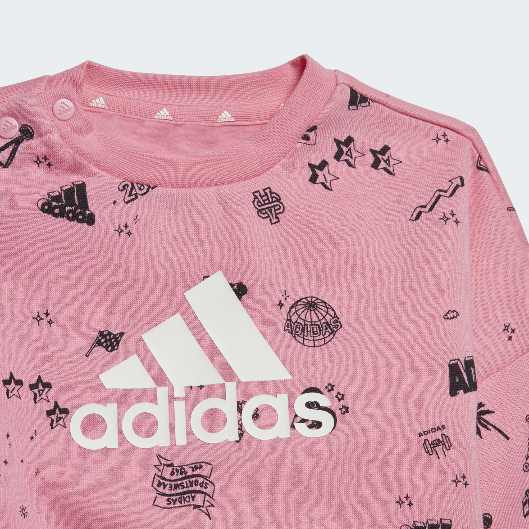 Når de er komfortable, kan småbarna utforske fritt. La dem utforske verden med dette praktiske adidas-settet for småbarn. Den er laget av mykt, børstet materiale, og gir masse varme til de små som liker å utforske livet utendørs. Genseren har flaggermusermer, for en romslig følelse. Trykknappene på skulderen hjelper deg med å kle på de minste på rekordtid. Vi samarbeider med Better Cotton for å forbedre bomullsdyrking globalt. Better Cotton gjør global bomullsproduksjonen bedre for menneskene som produserer den, bedre for miljøet den vokser i, og bedre for sektorens fremtid. Better Cotton hentes fra en kjedeforvaringsmodell som kalles massebalanse. Dette betyr at Better Cotton ikke fysisk kan spores til sluttprodukter. Better Cotton Farmers drar imidlertid nytte av etterspørselen etter Better Cotton i volumer som tilsvarer dem vi "etterspør". Finn ut mer her: bettercotton.org/learnmore