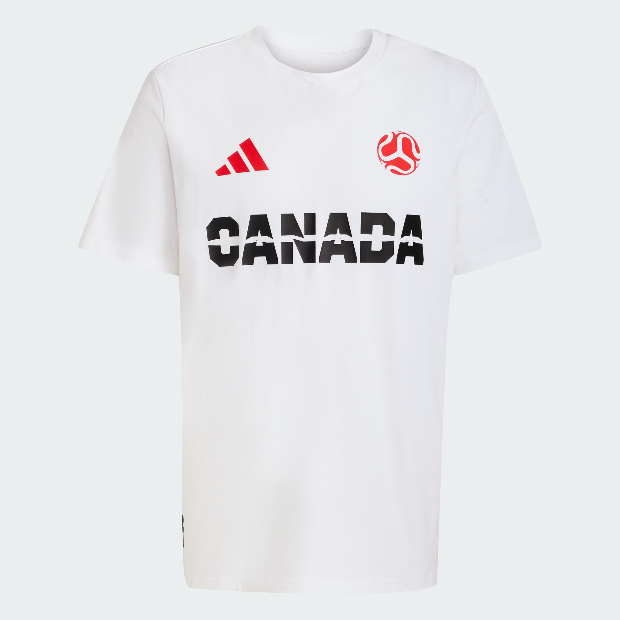 Canada-t-skjorten er en feiring av fotballkulturen, og samler den pulserende ånden til FIFAs VM-vertskapsland i 2026 i et plagg som viser frem merkets forpliktelse til kvalitet og stil. Med et nikk til Mexico, USA og Canada integrerer t-skjorten sømløst autentiske symboler på den delte stoltheten og samholdet, og skaper en ikonisk hyllest til turneringen. Stoffet er enkelt-jersey laget av ren bomull, og leverer komfort og pustende egenskaper for å bli et favorittvalg til hverdagsbruken. Normal passform og den runde halsen gir et klassisk uttrykk, mens 3 Bar-logoen på høyre side av brystet har med seg et ekstra preg av klassisk stil. Enten du heier fra tribunen eller har en hviledag utendørs, blir denne t-skjorten et favorittvalg når du vil vise frem kjærligheten din til fotball. Omfavn fotballkulturen sammen med adidas, og serverer en statement som sier alt.