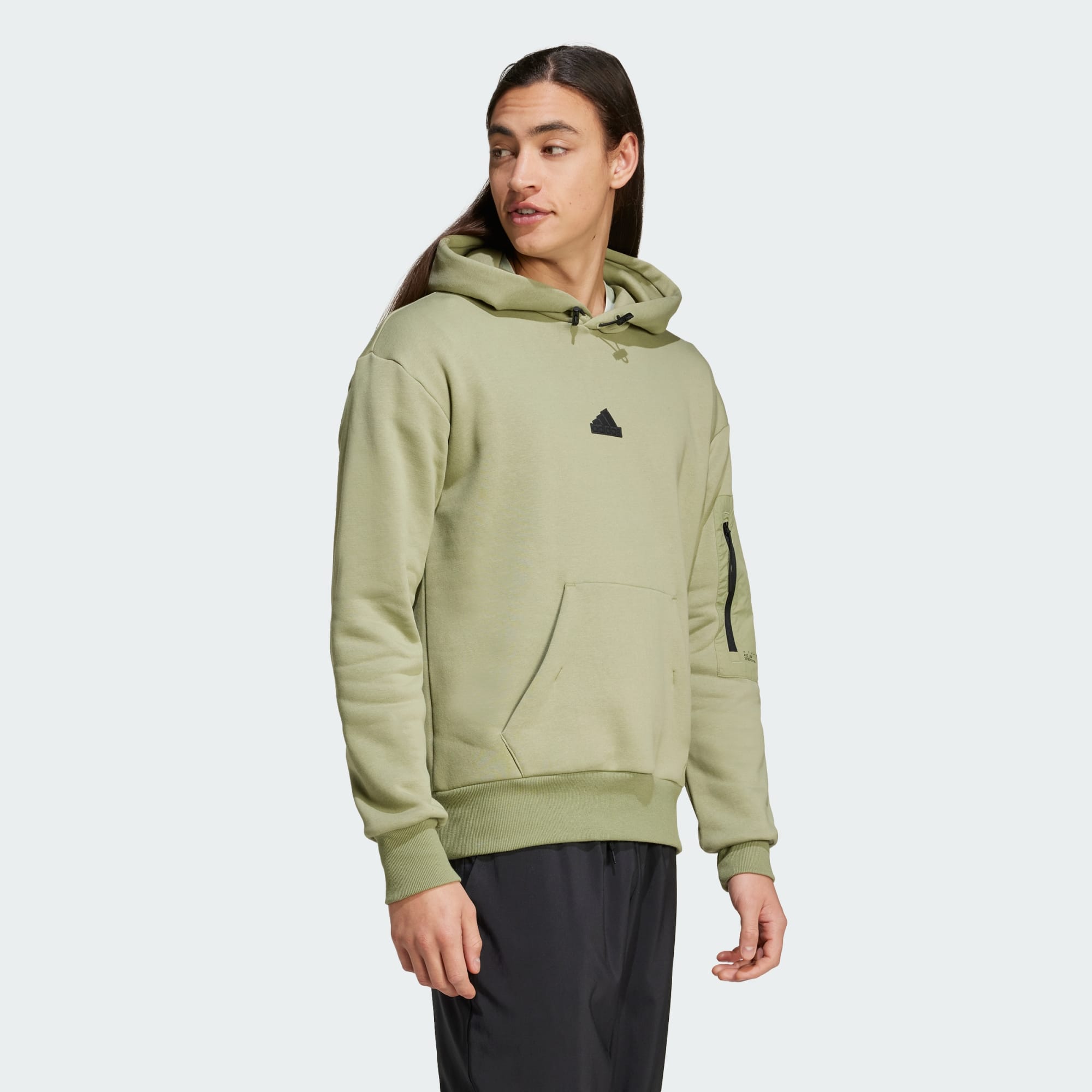 Røm ut i komfort som omfavner deg. Denne komfortable adidas-hettegenseren er det perfekte plagget, uansett hvor dagen fører deg. Ribbestrikkede mansjetter holder på varmen, og den myke konstruksjonen i bomullsfleece holder kulden ute. Den smarte glidelåslommen på ermet har plass til det viktigste. Det ser ut som du har funnet den neste favoritt-hettegenseren din for eventyr i byen, og utflukter langt utenfor. Ved å velge resirkulerte materialer, kan vi gjenbruke materialer som allerede er produsert, noe som bidrar til å redusere avfall. Valg av fornybare materialer hjelper oss med å fjerne avhengigheten av begrensede ressurser. Produktene våre som lages med en blanding av resirkulerte og fornybare materialer, inneholder minst 70 % av disse materialene totalt.