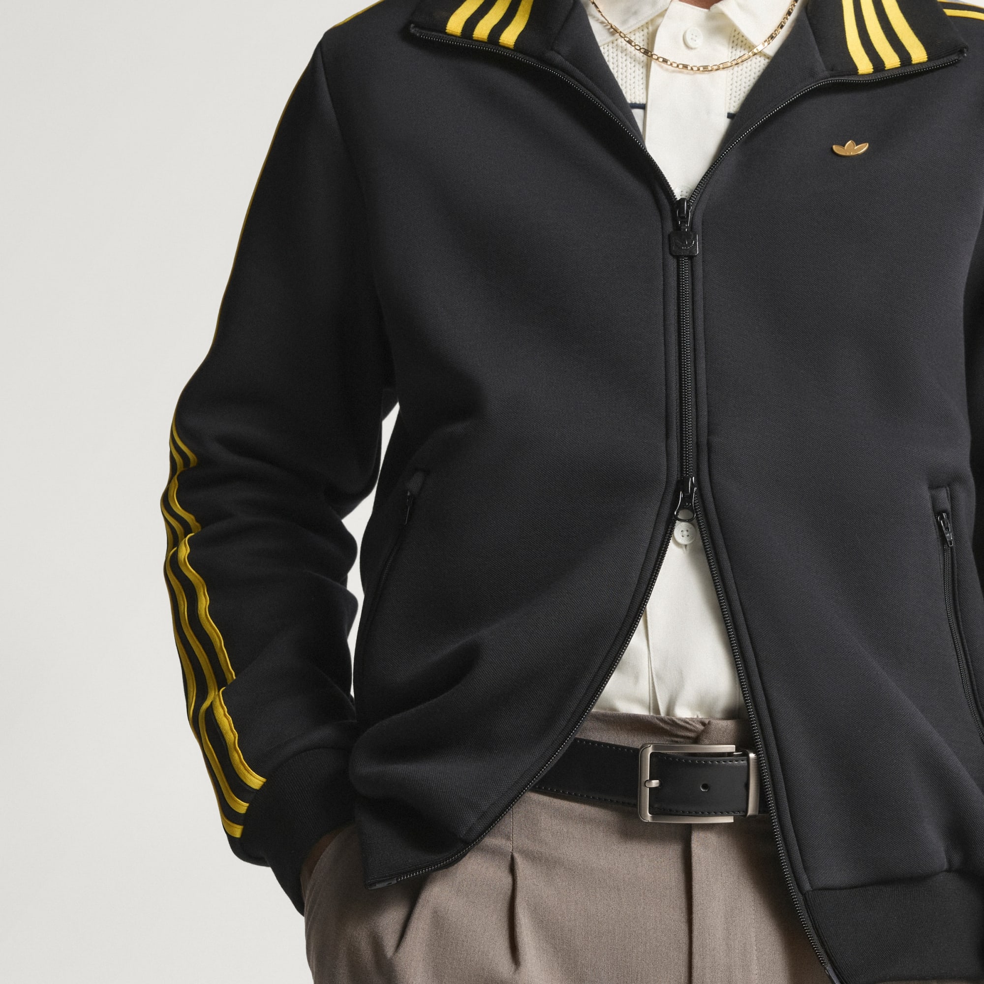 Classic Tipped Stripes-treningsoverdelen er en hyllest til den rikholdige adidas-arven, og setter ikonisk design sammen med moderne stildetaljer. Denne treningsoverdelen lages for alle som vet å sette pris på klassikerne, og har Santiago-snittlinjene, et tradisjonelt element fra arkivene våre, supplert med energisk grafikk fra 1994. Den kommer med en slank passform som sitter komfortabelt kroppsnært. Stående krage og glidelåslukkingen gir et snev av raffinement, så dette blir et utmerket valg til de uformelle aktivitetene, og sportsdagene. Enten du gjenopptar kontakten med røttene dine eller sikter å gjøre et stilinntrykk, kan du sette denne treningsoverdelen i favoritt-kategorien.