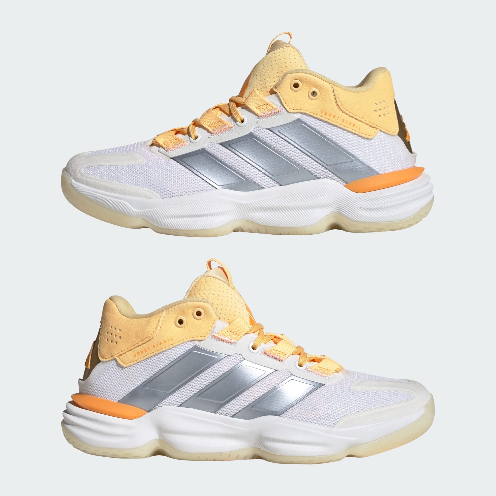 Ta kontroll på banen. Disse skoene er fulle av basketballinspirert stil, og er en del av den alltid pålitelige adidas Stabil-familien av innendørssko fokusert på kraft. Den mellomhøye mesh-overdelen sørger for støtte og ventilering, mens REPETITOR-mellomsålen leverer stabilitet og komfort til hvert skritt. Slitesterk yttersåle i gummi gir fotfeste som kan avgjøre kampen, når du tar kontroll.