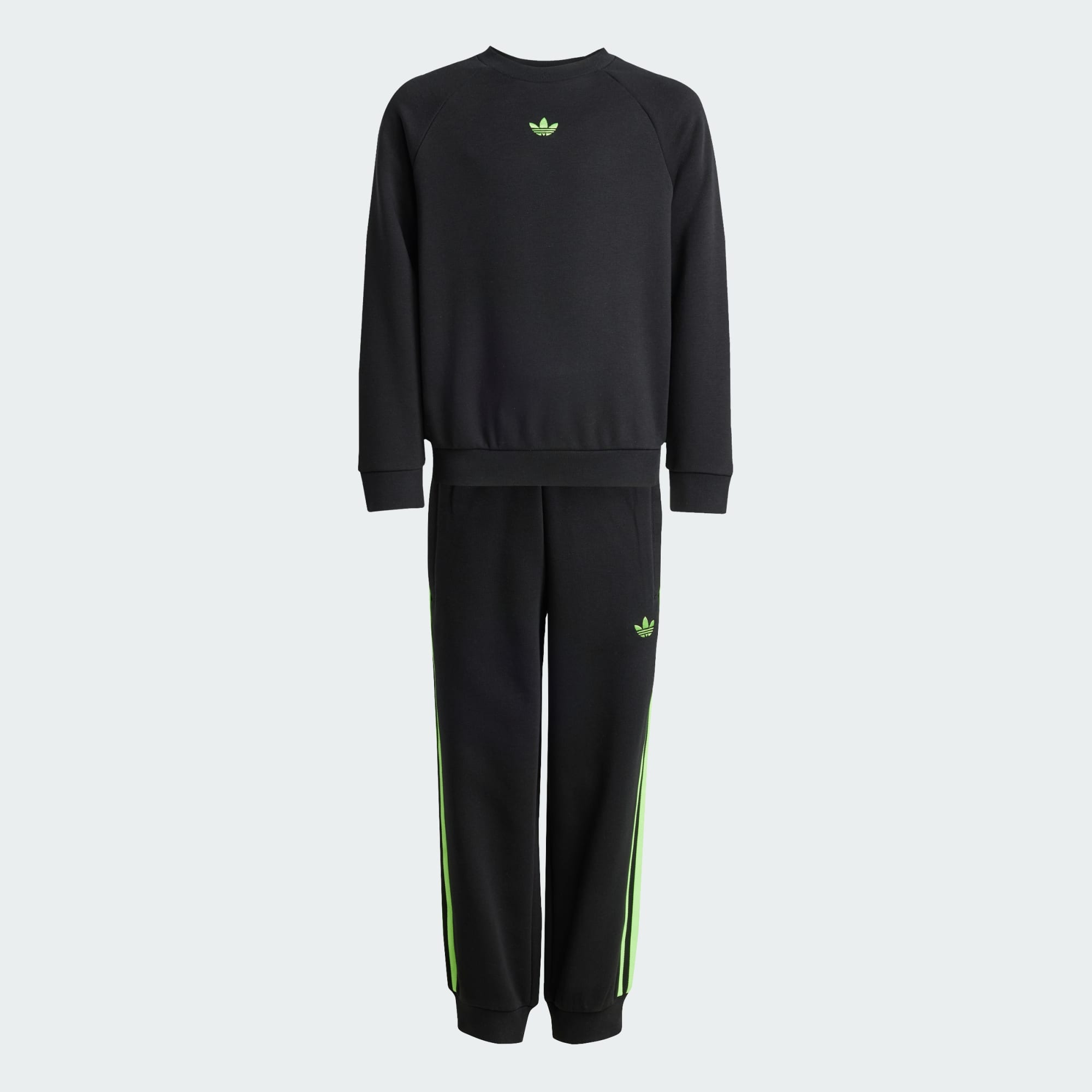 Barna er klare for leketiden i dette settet fra adidas. Det myke fleecestoffet holder dem komfortable hele dagen, enten de utforsker lekeplassen eller krøller seg sammen på sofaen for en lesestund. 3-Stripes nedover sidene og Trefoiler på både genseren med rund hals og buksen viser frem adidas-energien.