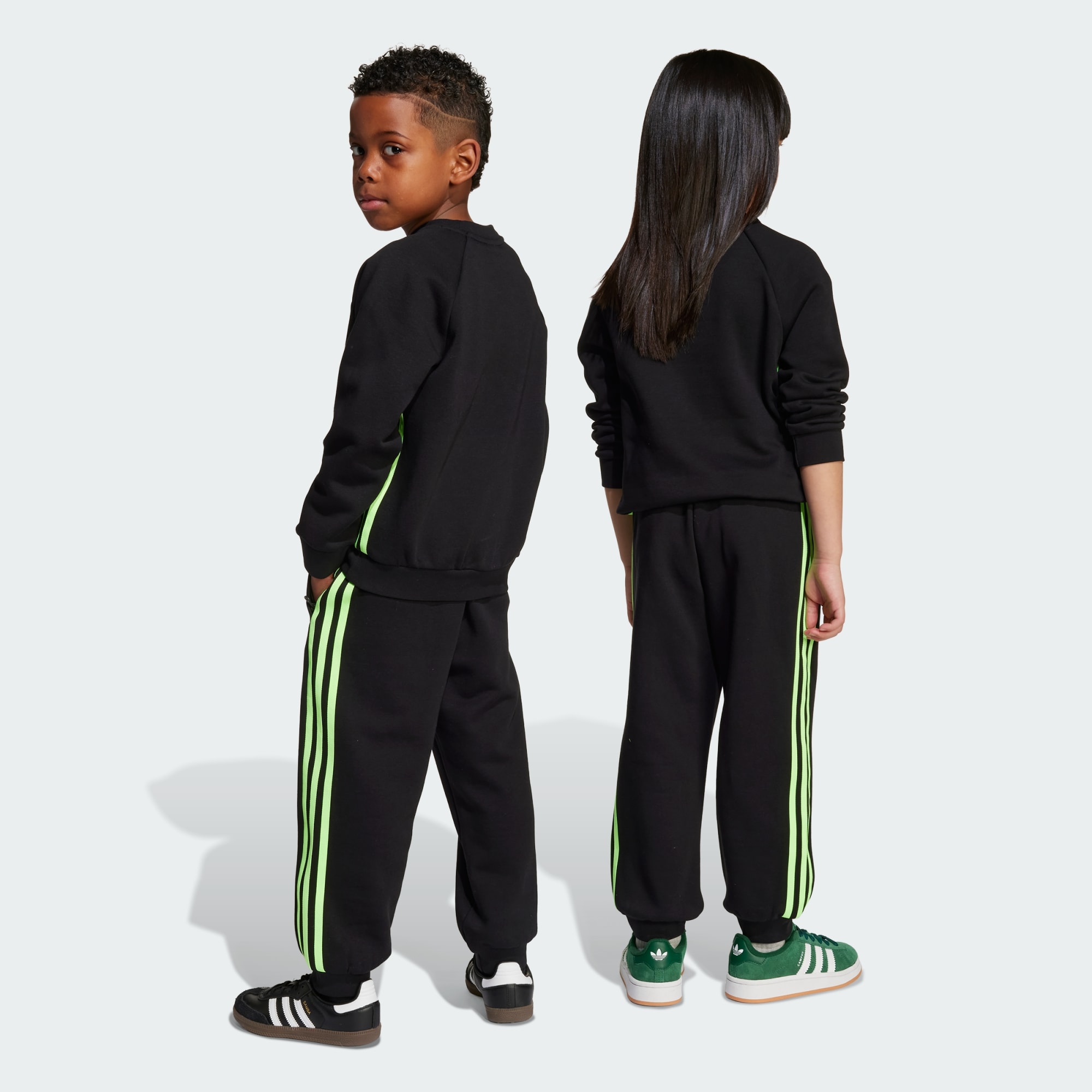 Et crewneck-sett av fleece, for barn som elsker 3-Stripes.