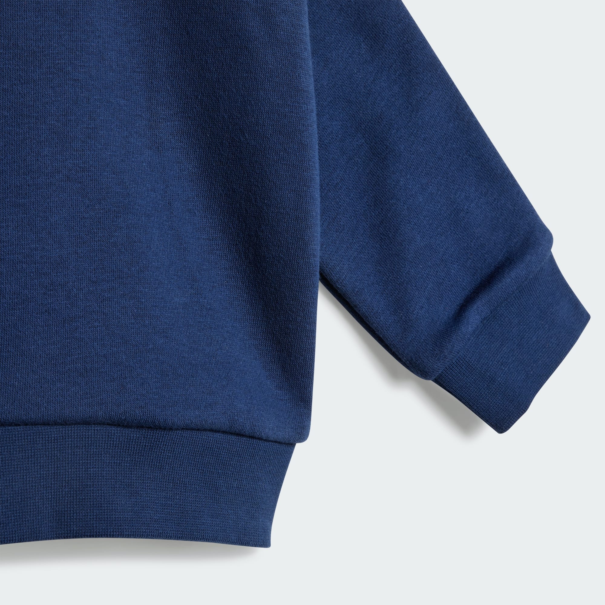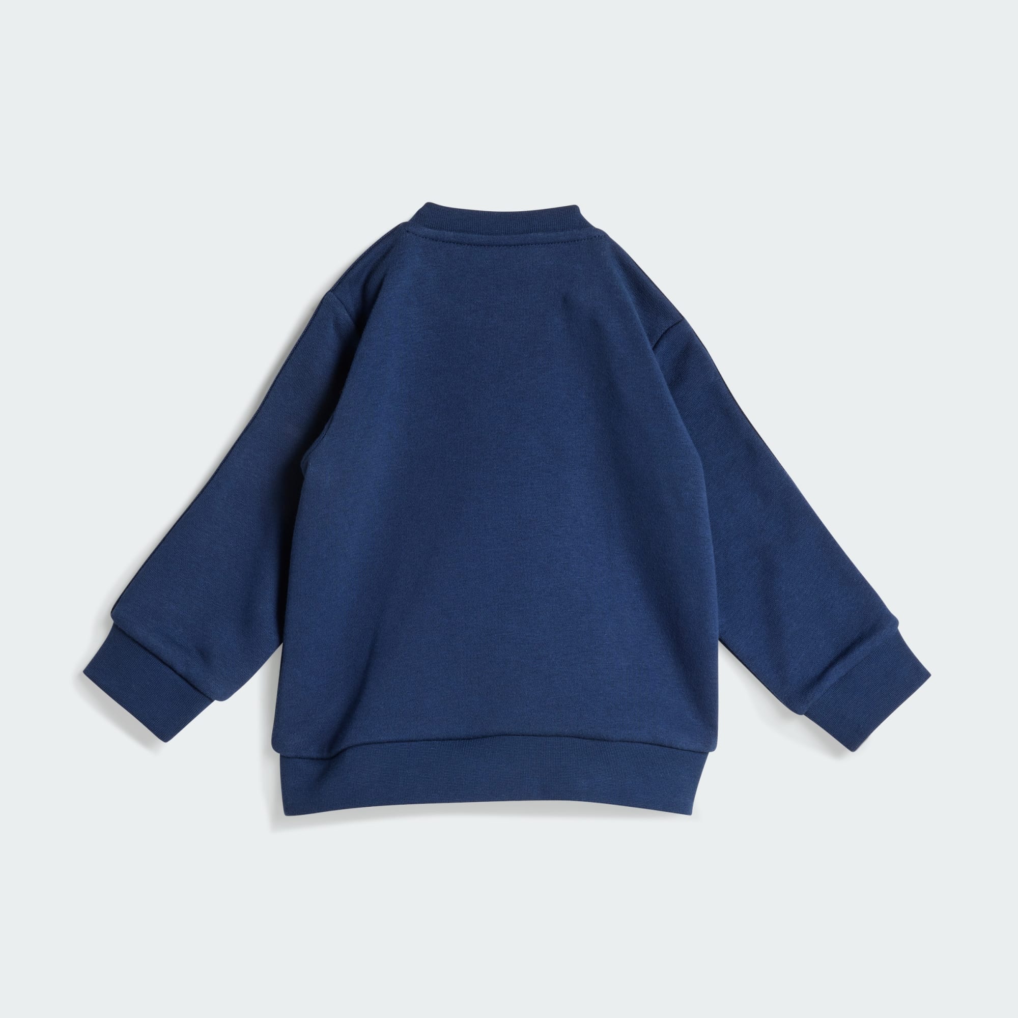 Dette adidas-settet for småbarn er et must for aktive små. Genseren med rund hals er myk og komfortabel, og inneholder en denim-bukse med elastisk liv og velkjente 3-Stripes. Ribbestrikkede mansjetter holder på varmen.