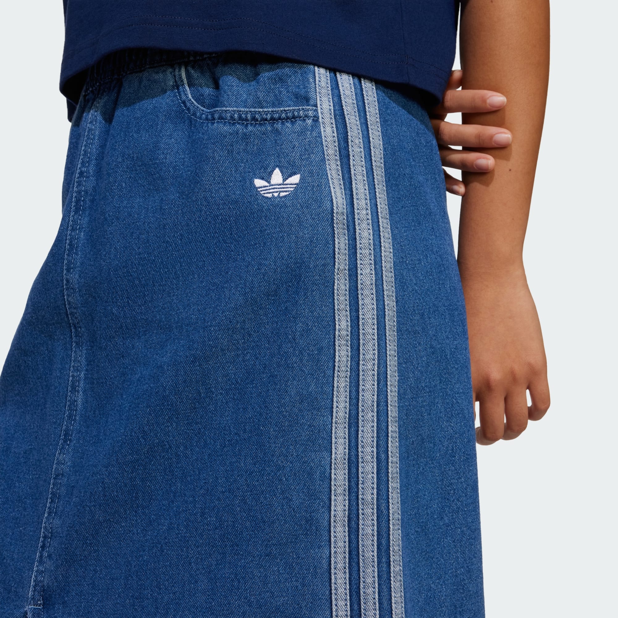Dette adidas-skjørtet for juniorer handler om allsidighet. Det lages av slitesterk denim og har lommer foran og bak, så du har nok av plass til tingene dine når du er på farten. Det har den perfekte lengden når du skal kombinere det med alt fra en avslappet t-skjorte til en pyntet bluse. Uansett hvor dagen fører deg, er dette skjørtet med deg.