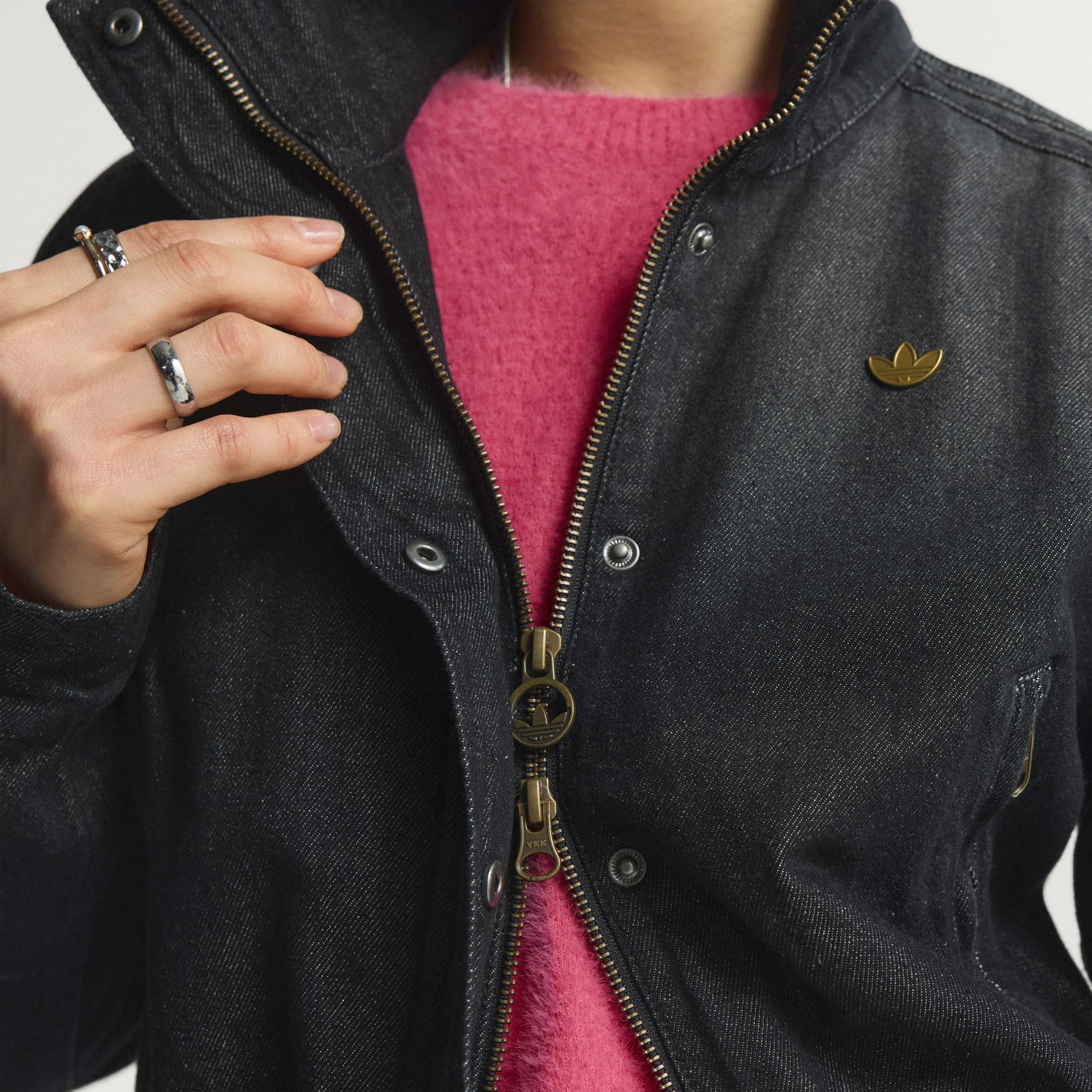 Denim-treningstoppen lages av premium materiale, og designes for å komplettere garderoben din med et snev av rebelsk optimisme. Den høye halsen og hel glidelåslukking gir en elegant silhuett, noe som gjør denne adidas-treningsoverdel en til et utmerket valg som et av flere lag, eller på egenhånd. Normal passform gir komfort og bevegelsesfrihet, og dette blir til et allsidig plagg for alle slags anledninger. Omfavn Originals-ånden med dette tidløse plagget, der moderne design settes sammen med klassiske elementer. Kombiner den med favorittjeansen eller -joggebuksen din, for et komplett antrekk som sier mye.