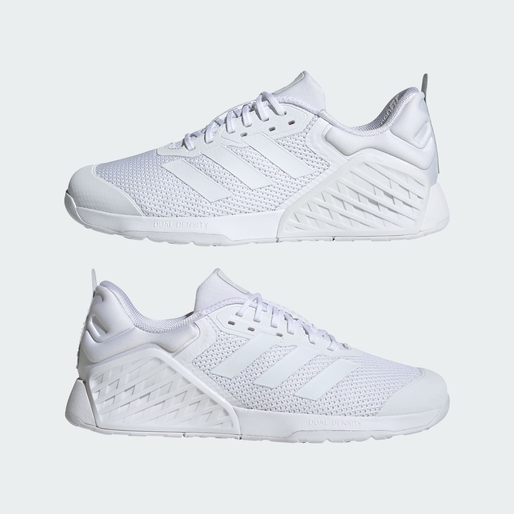 There are two layers of foam in adidas Dropset trainer shoes. The stiffer midsole foam in the heel adds stability, and the softer foam in the forefront is for added comfort and flexibility. Combined, they add controlled stability you can trust throughout the most intense workout. Strength training shoes require comfort to block out distractions, and stability you can trust to lift heavy with good form. The adidas Dropset's dual-density midsoles tick both boxes, giving you the foundation for strength workouts.