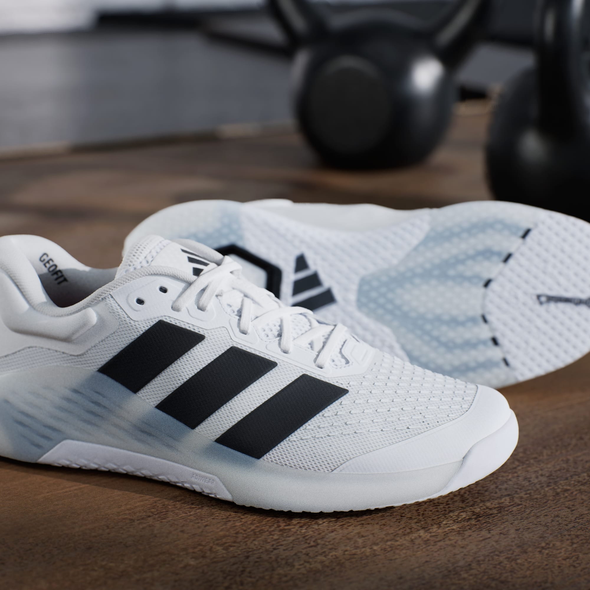 Føl deg selvsikker gjennom hvert løft med GeoFit-hælen for ekstra stabilitet i krevende sett og den nye Footadapt-innleggssålen som holder formen på plass helt til siste repetisjon.