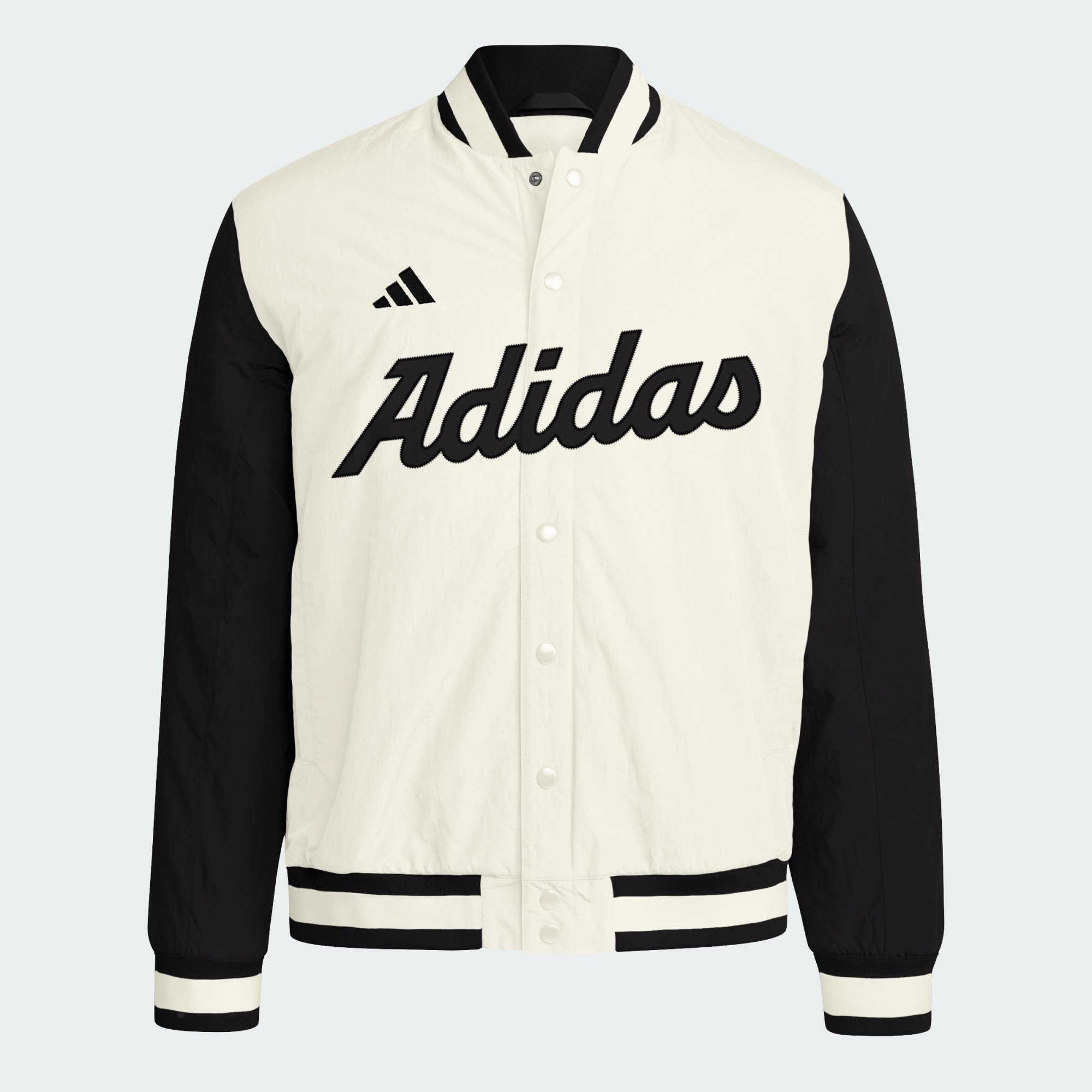 Denne klassiske baseball-trenerjakken fra adidas er laget av enkeltvevet materiale som føles glatt og komfortabelt. Klassiske detaljer inkluderer ribbestrikking på kragen og mansjettene, og en forlenget kant som gjør den til den perfekte partneren når du heier på laget ditt. Stilisert adidas-grafikk foran gjør stilen komplett.