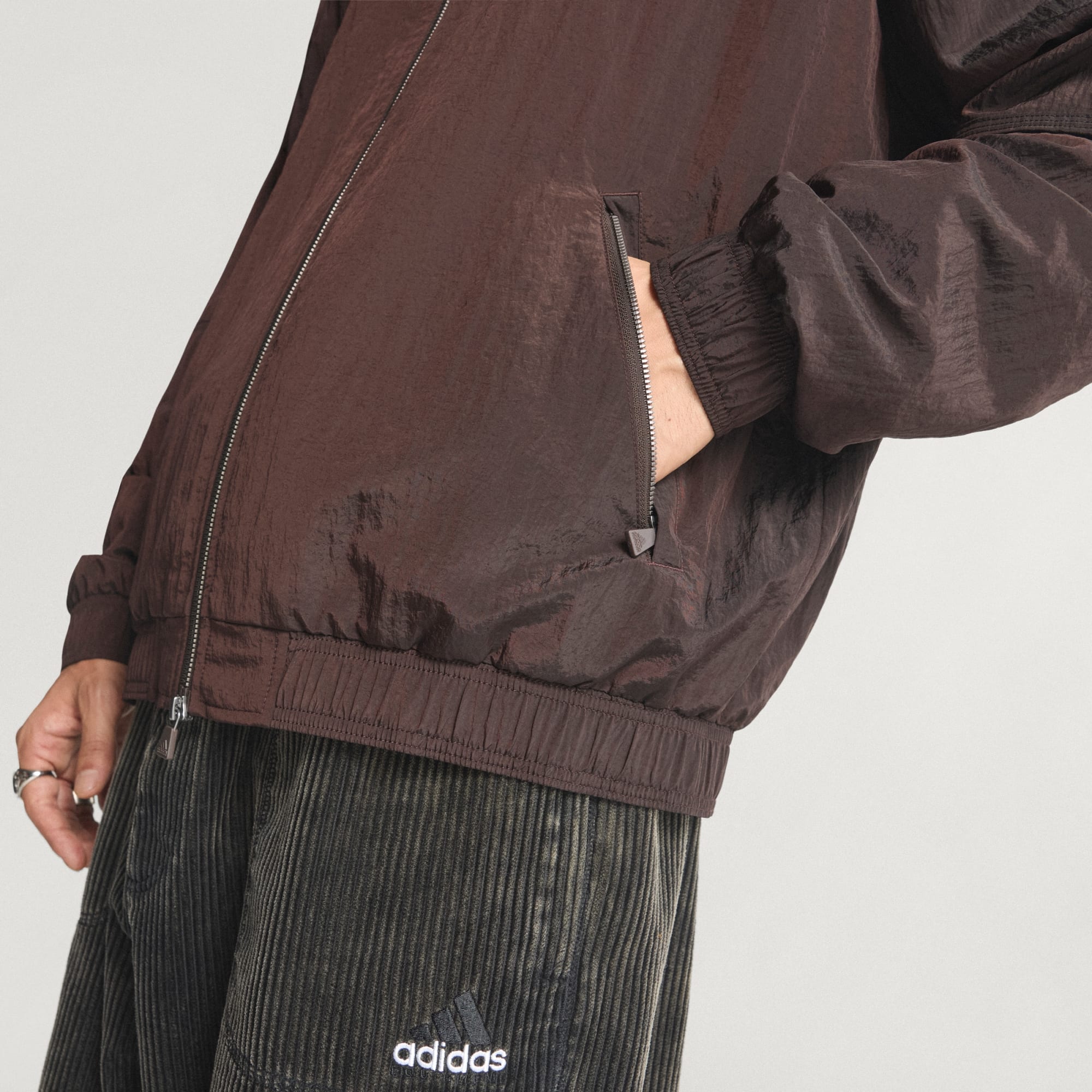 Denne adidas-treningsoverdelen er en direkte etterkommer av 90-tallets Equipment-kolleksjon, inspirert av idéen om å bare levere det essensielle. Den lages av glatt, enkeltvevet materiale med glidelåslommer, og det enkle designet har ribbestrikkede mansjetter og den ikoniske adidas Badge of Sport-logoen foran og bak. Den løse formen med en toveis glidelås skaper en avslappet stil med retro-vibber.