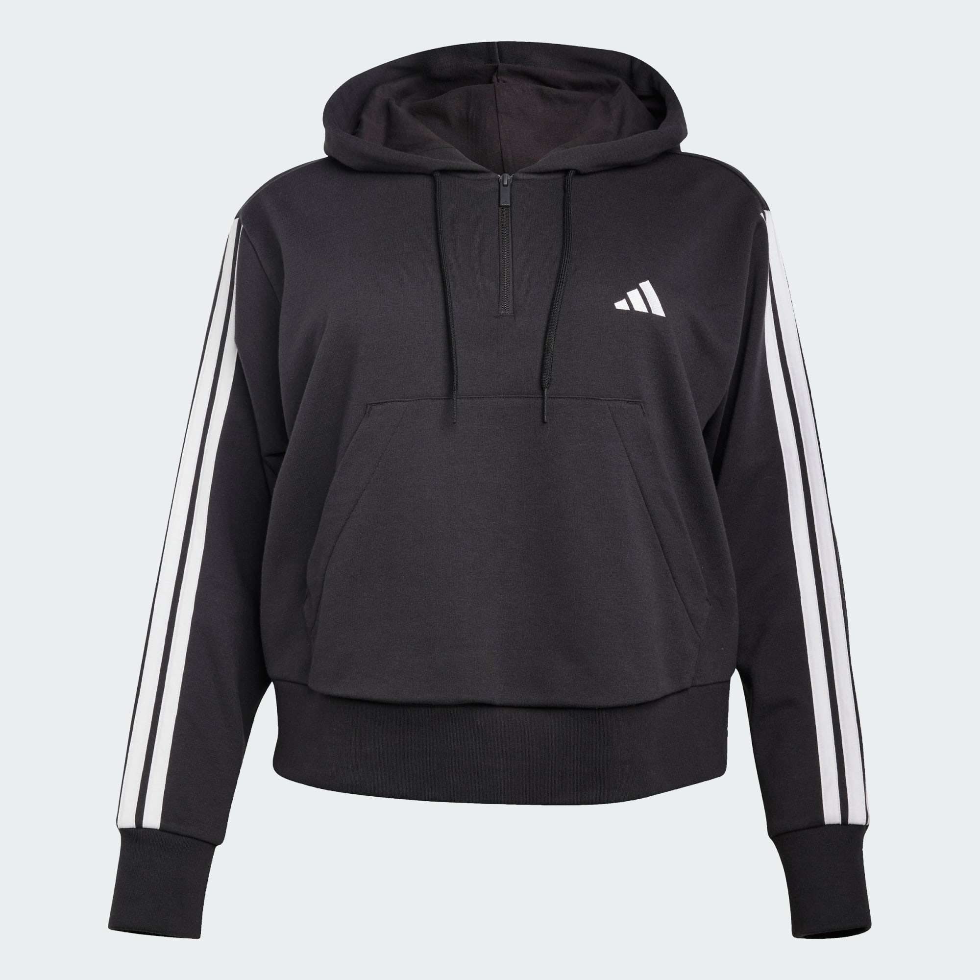 Essentials 3-Stripes French Terry Quarter-Zip Hoodie (Plus Size)