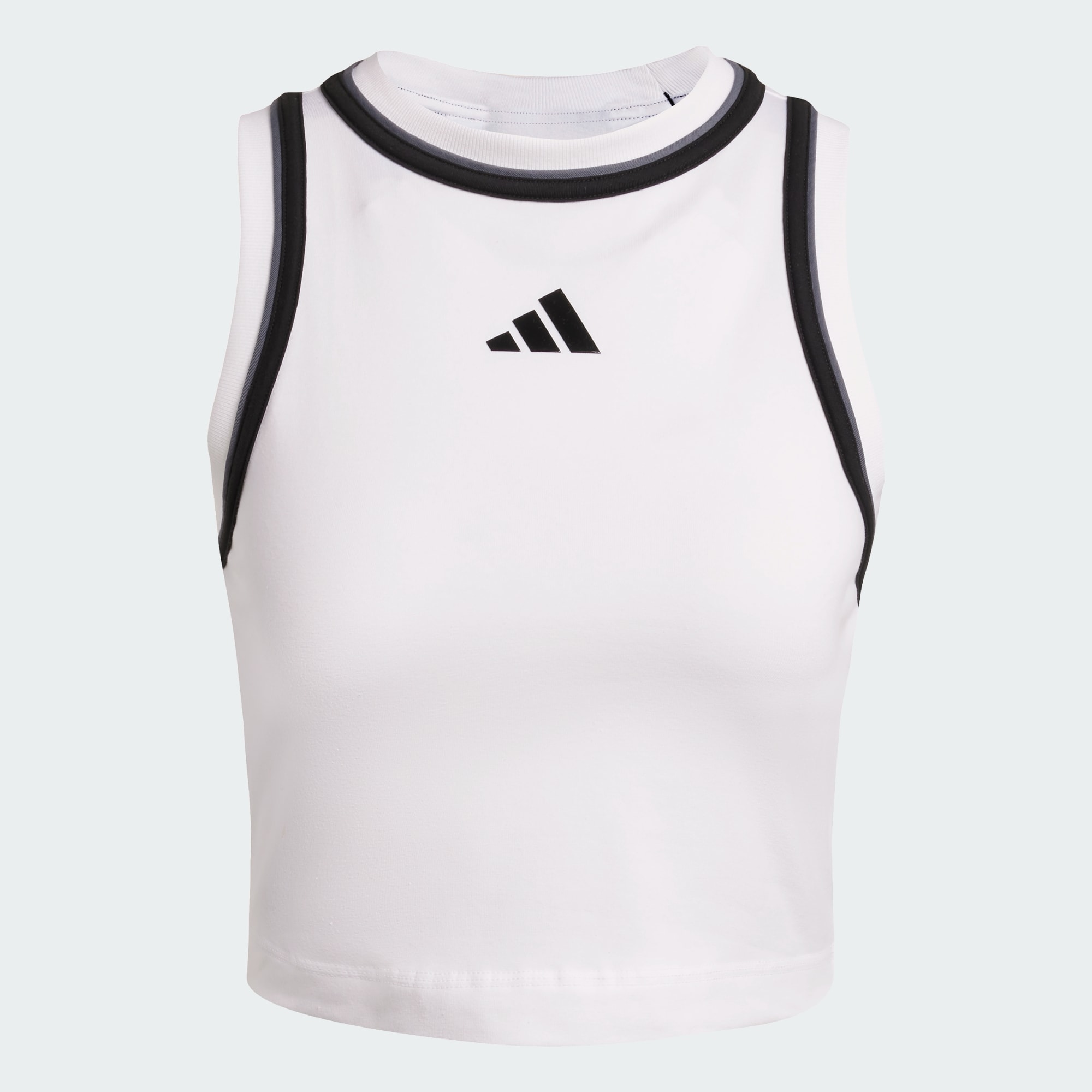 En avkortet tanktopp, laget for eventyr i varmen. Diskrete fargedetaljer blir til en frisk vri på dette sporty basisplagget. Den lages av mykt jersey-materiale av bomull, med kontrastfargede detaljer rundt halsen og armhullene, for en uventet vri. Bruk den sammen med høye shorts eller favoritt-jeansen din, for en enkel men stilig stil.