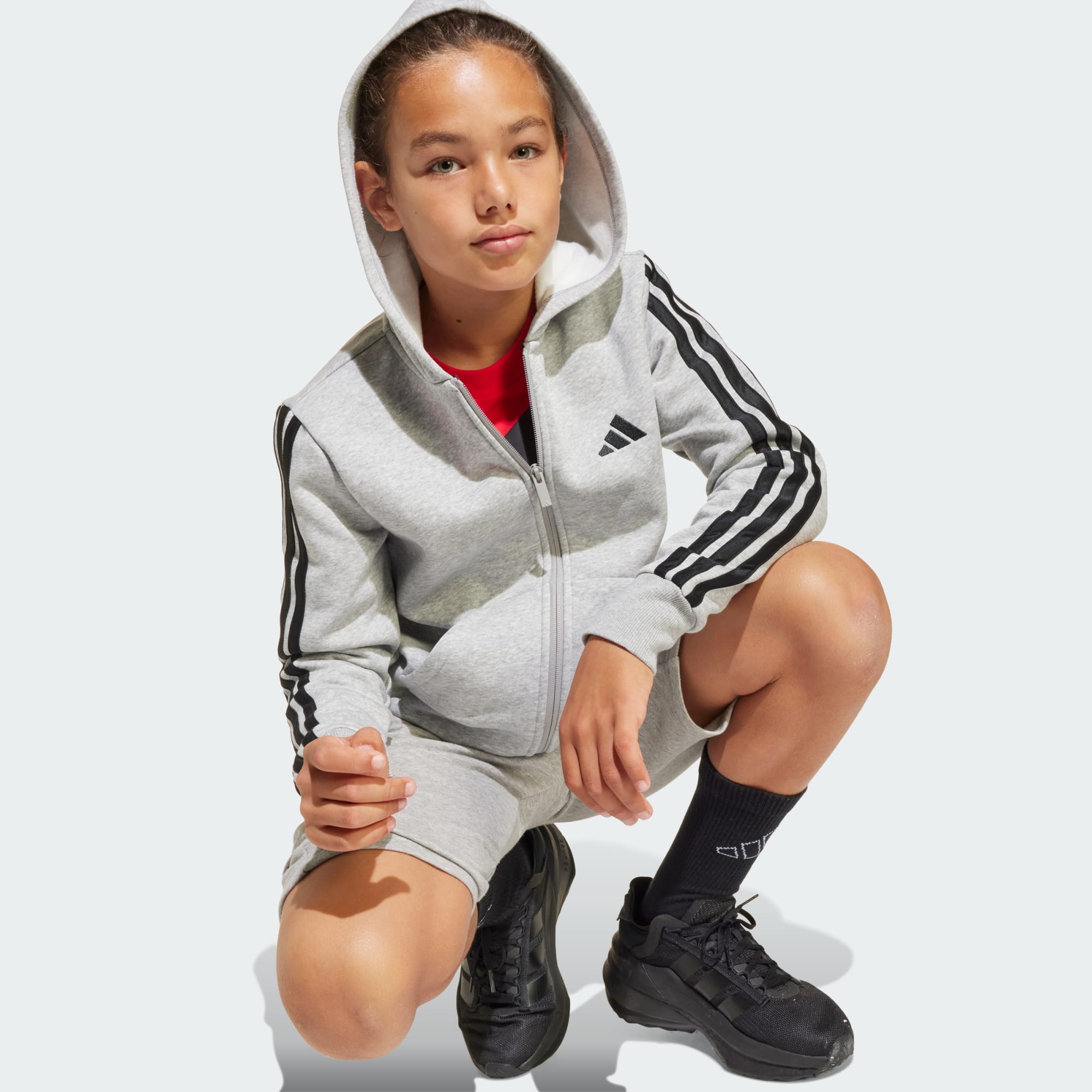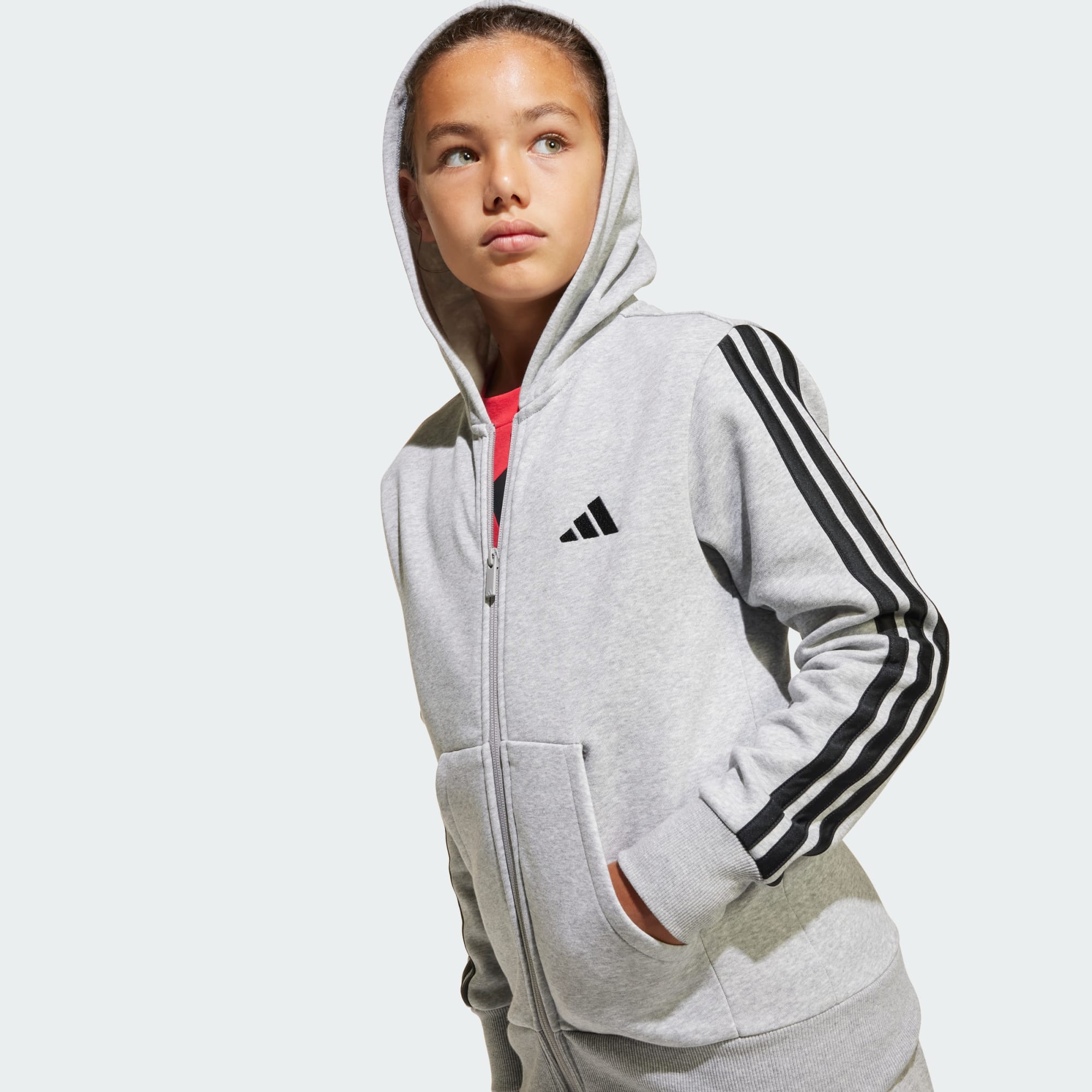 Hettegenser for juniorer, med klassisk 3-Stripes-stil.