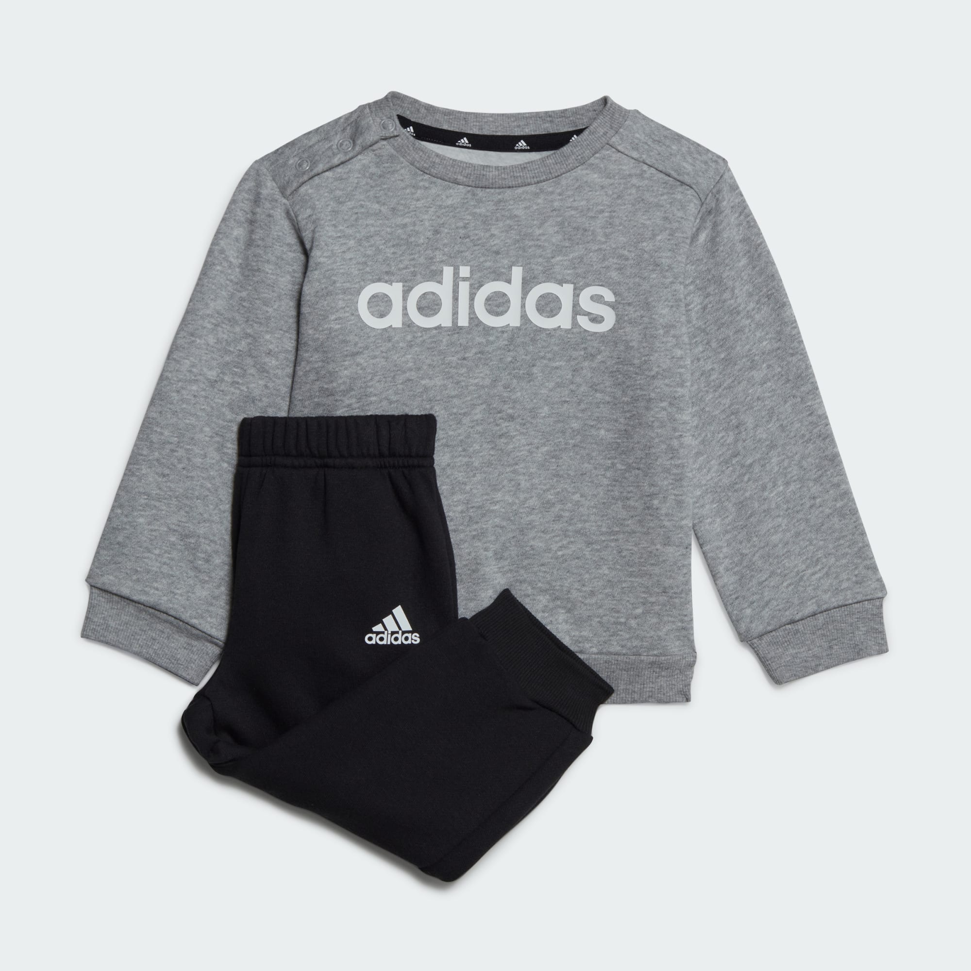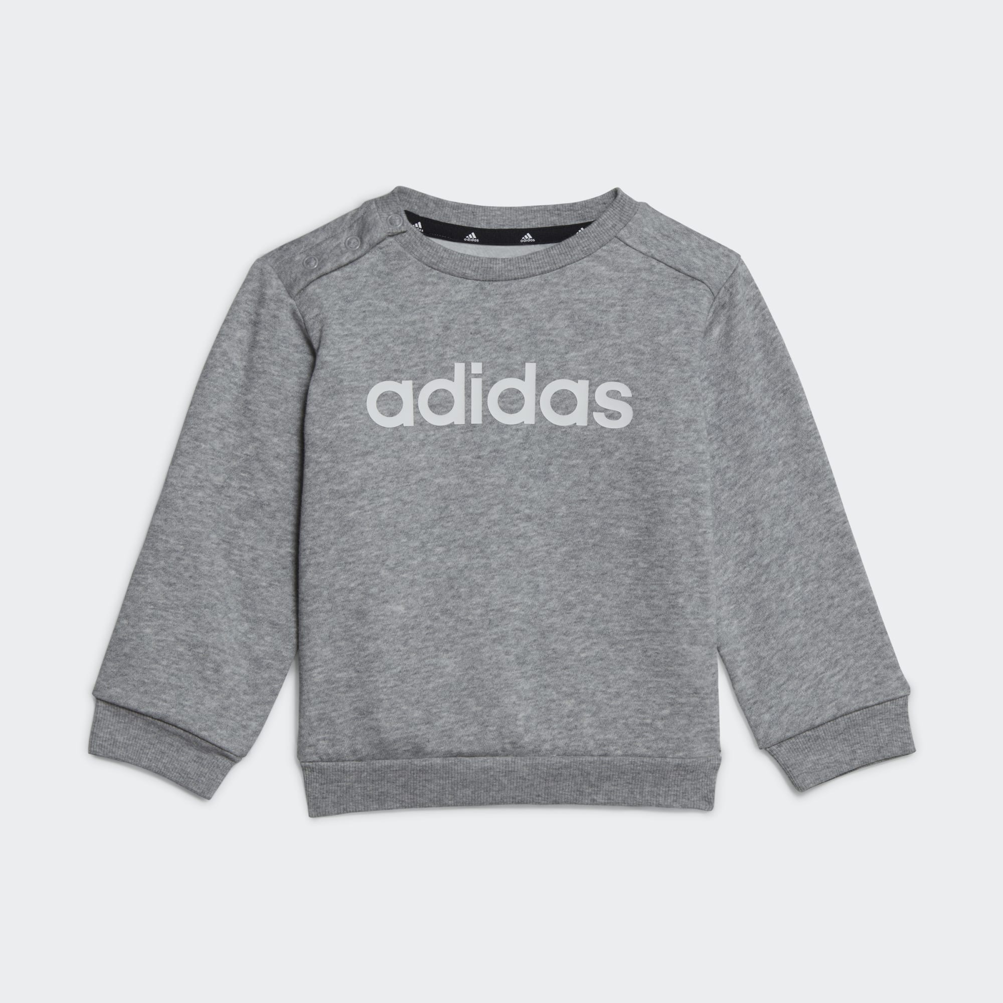 Denne adidas-joggedressen for småbarn er perfekt for aktive dager. Genseren og buksen er laget av en myk bomullsblanding, og har ribbestrikkede kanter for en komfortabel passform. Trykknapper på skuldrene gjør den enkel å ta av og på. Minst 70 % av dette produktet er en blanding av resirkulerte og fornybare materialer.