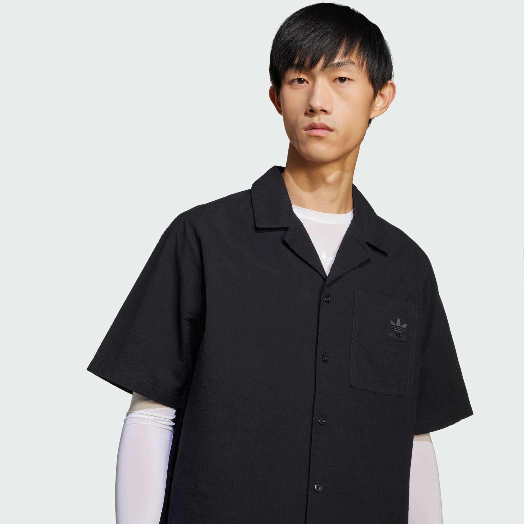Denne adidas-trøyen lages av seersucker-materiale, med en lett følelse og teksturert stil som handler om enkle sommerfølelser. Den løse formen gir en avslappet stil. Bruk den med alt fra shorts til chinos, avhengig av hvor dagen fører deg.