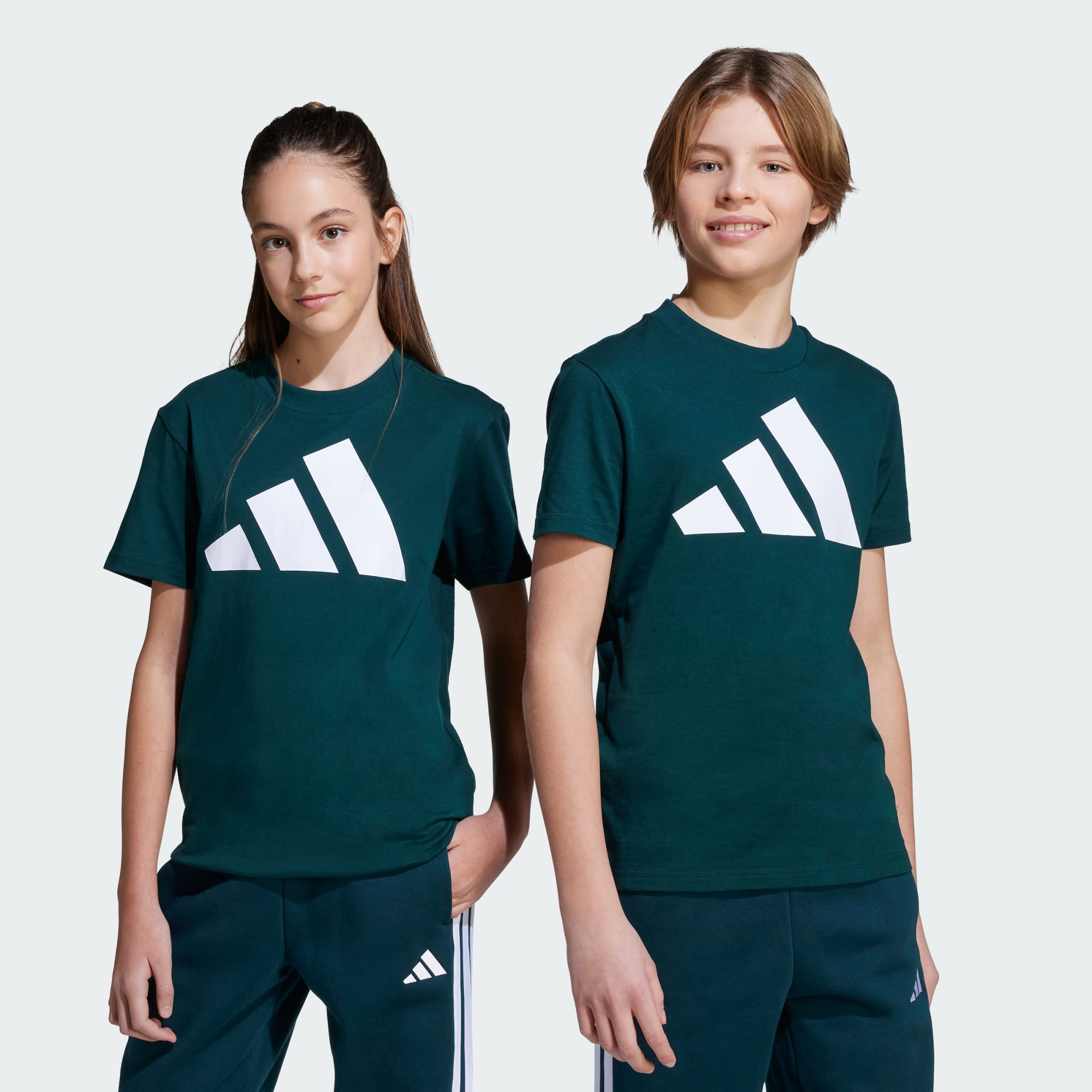 Denne adidas-t-skjorten for juniorer passer til alle anledninger, og er perfekt for hverdagsbruk. Den lages av mykt enkelt-jersey-materiale, og holder deg komfortabel når du skal møte venner eller bare slappe av hjemme. En stor 3 Bar-logo på brystet viser frem adidas-stoltheten.
