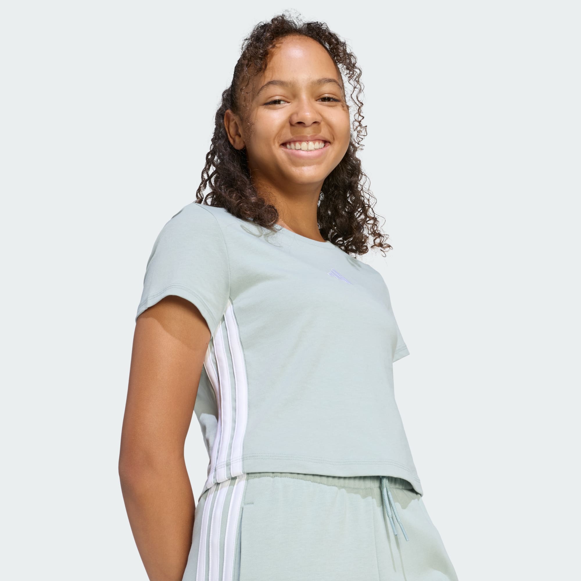 Essentials-t-skjorten designes for å gi barna komfort og enkelhet i hverdagsgarderoben, enten de er på vei til skoletimer, har en playdate eller bare slapper av hjemme. Den lages av ren bomull med en myk følelse mot huden, og dermed er dette et utmerket valg for hverdagsbruken. Konstruksjonen av enkelt-jersey gir økt slitestyrke, slik at denne alltid tåler påkjenningene gjennom hverdagsaktivitetene. Slank passform betyr en strømlinjeformet silhuett, mens den runde halsen serverer et smart og klassisk preg til uttrykket. Det moderne designet og ren stil gjør denne t-skjorten allsidig nok til å passe sammen med alle favorittantrekkene deres. adidas presenterer en t-skjorte som legemliggjør den opprørske optimismens ånd, og oppmuntrer de små til å omfavne dagene sine med full selvtillit. Få en harmonisk blanding av stil og komfort inn i kolleksjonen deres med dette essensielle plagget.