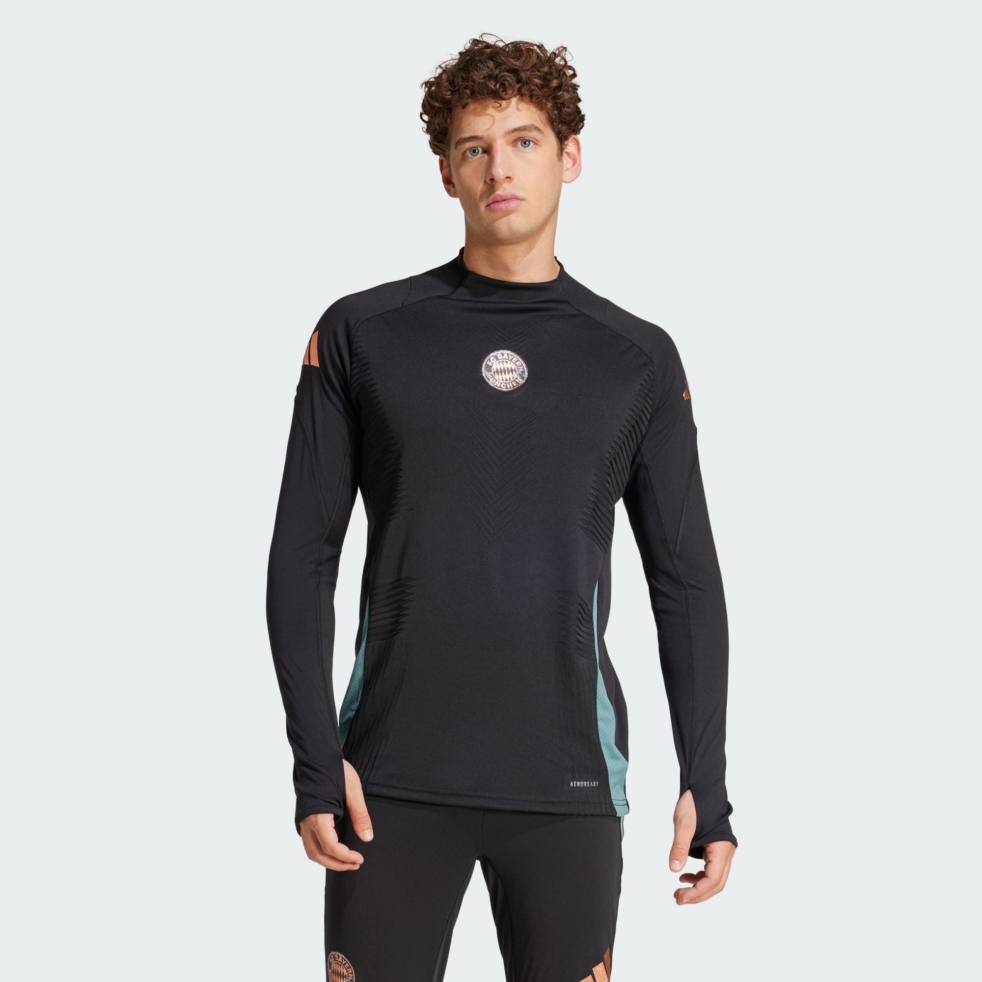 Push your football limits when the temperature drops in this FC Bayern training top. Part of the club's elite adidas training gear, it fits slim but stretches to accommodate every movement. Cuff thumbholes let you extend the coverage and AEROREADY ensures moisture won't be a problem. On the chest, a heat-applied club badge shows you don't accept second-best. This product is made with 100% recycled materials. By reusing materials that have already been created, we help to reduce waste and our reliance on finite resources and reduce the footprint of the products we make.
