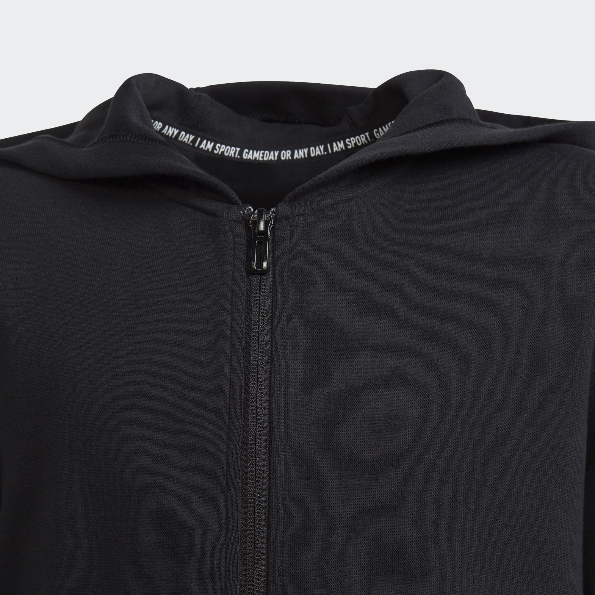 En hettegenser med hel glidelås og 3-Stripes-stilen.