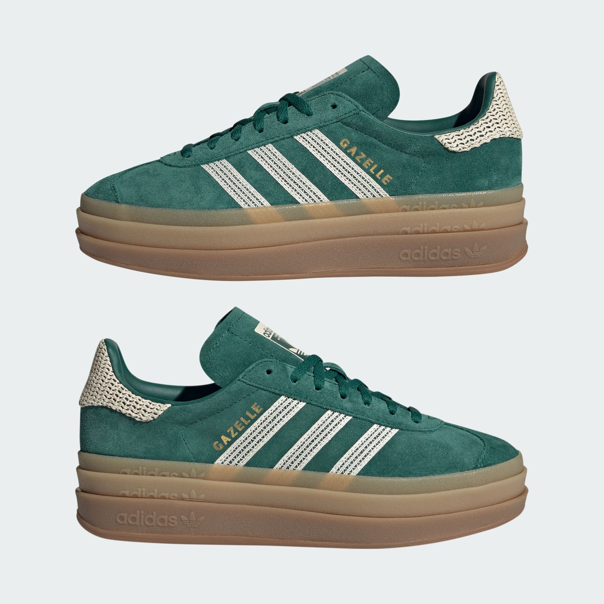Ta på deg stil og komfort i disse adidas Gazelle Bold-skoene. Overdelen av premium semsket skinn gir en rik og elegant stil, samtidig som den puster, og holder deg avslappet enten du er på farten eller skal ut. Yttersålen av gummi gir grep du kan stole på, så du kan løpe selvsikkert på alle slags underlag. Gazelle har vært et ikon siden 60-tallet, og fortsetter sin karriere med en heklet makeover av velkjente 3-Stripes og hælstropp, og tilfører et feminint preg til den tidløse designen. Disse skoene tar alle slags antrekk til neste nivå, med en elegant men leken sjarm.