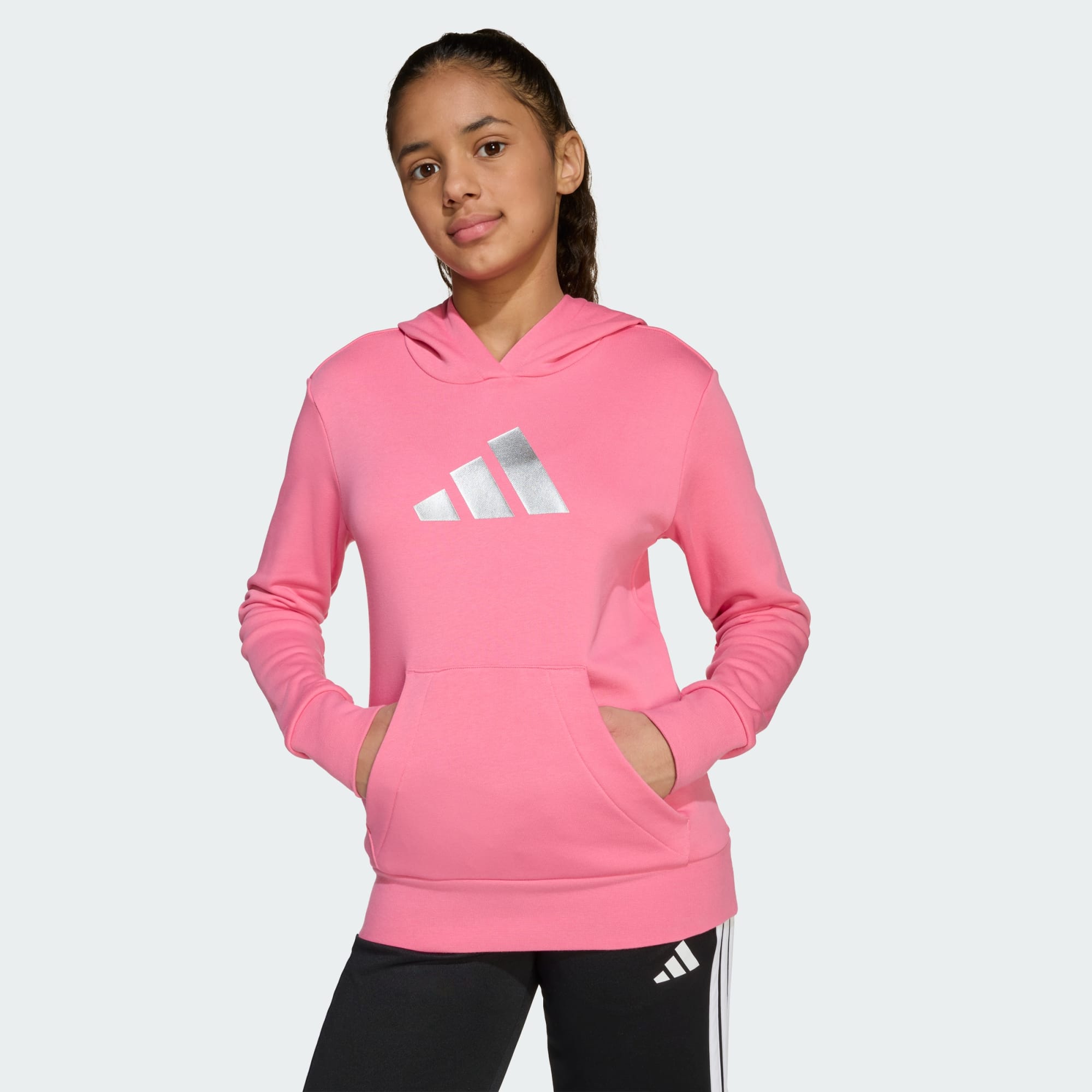 Denne junior-hettegenseren fra adidas lages for dagene når du vil føle deg komfortabel, men samtidig se velstelt ut. Collegestoffet av bomullsblanding er både mykt og komfortabelt, og den blanke grafikken på brystet gir et snev av hverdagsglamour. Enten du skal ut for å møte venner eller bare har tenkt å slappe av hjemme, lar denne hettegenseren stilen din skinne gjennom.