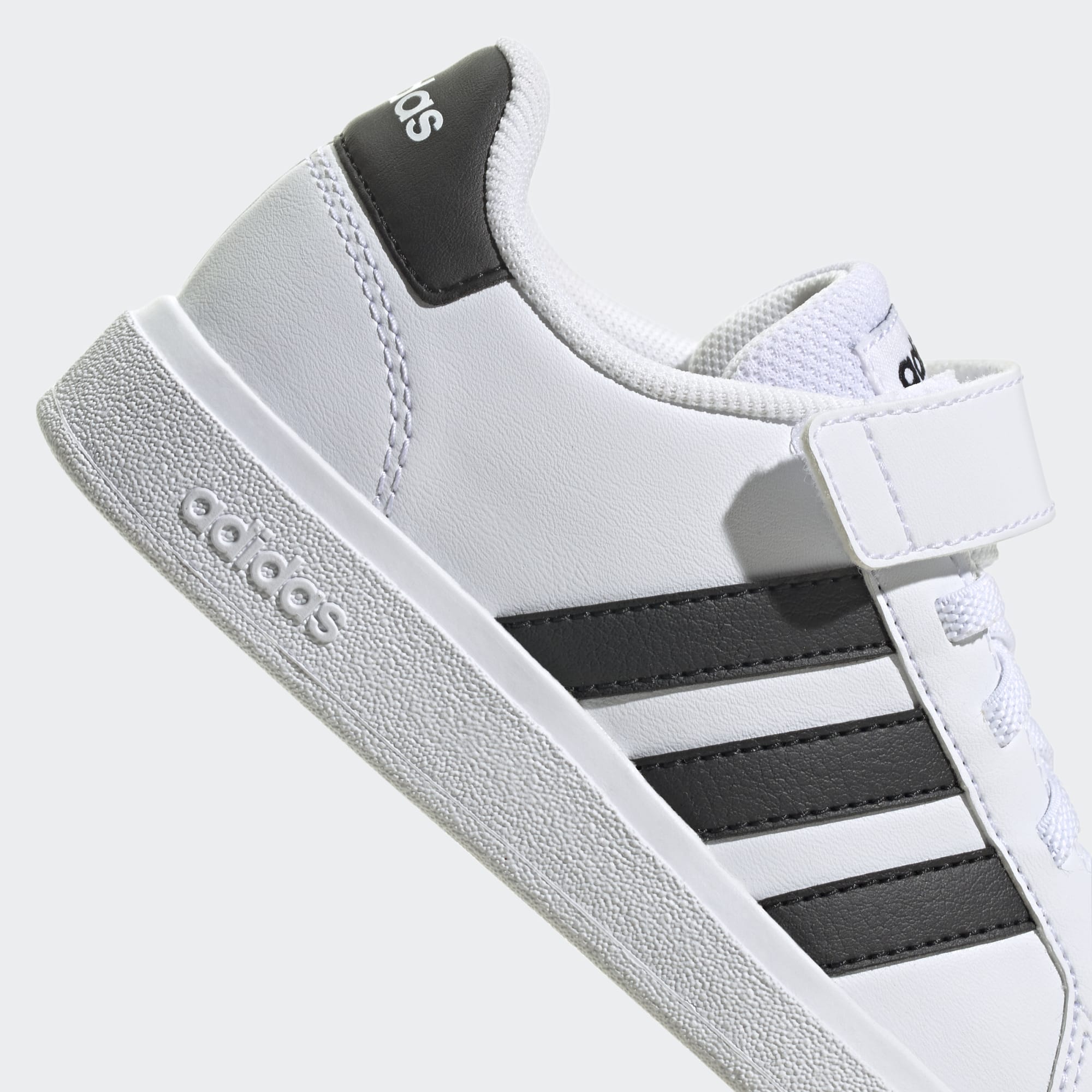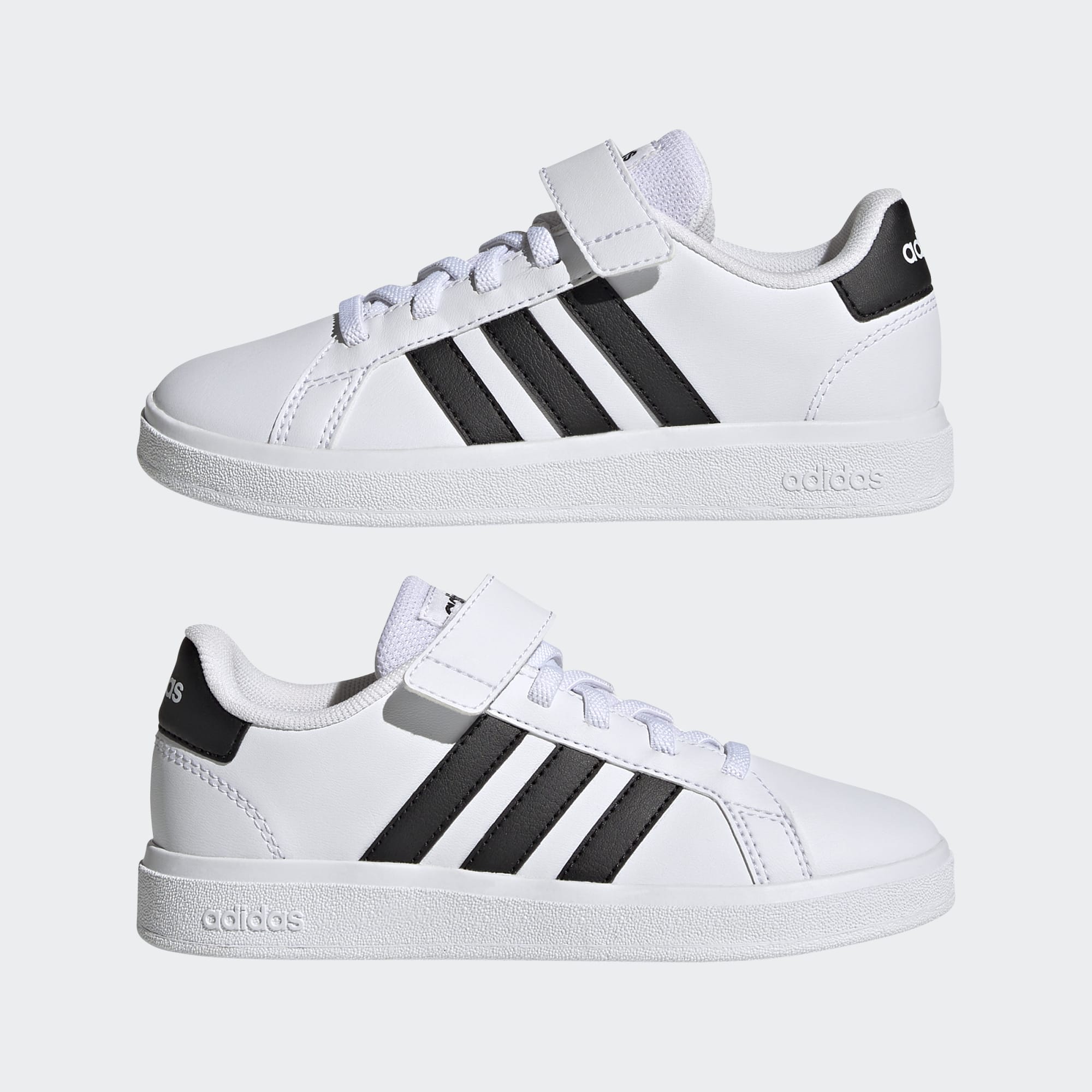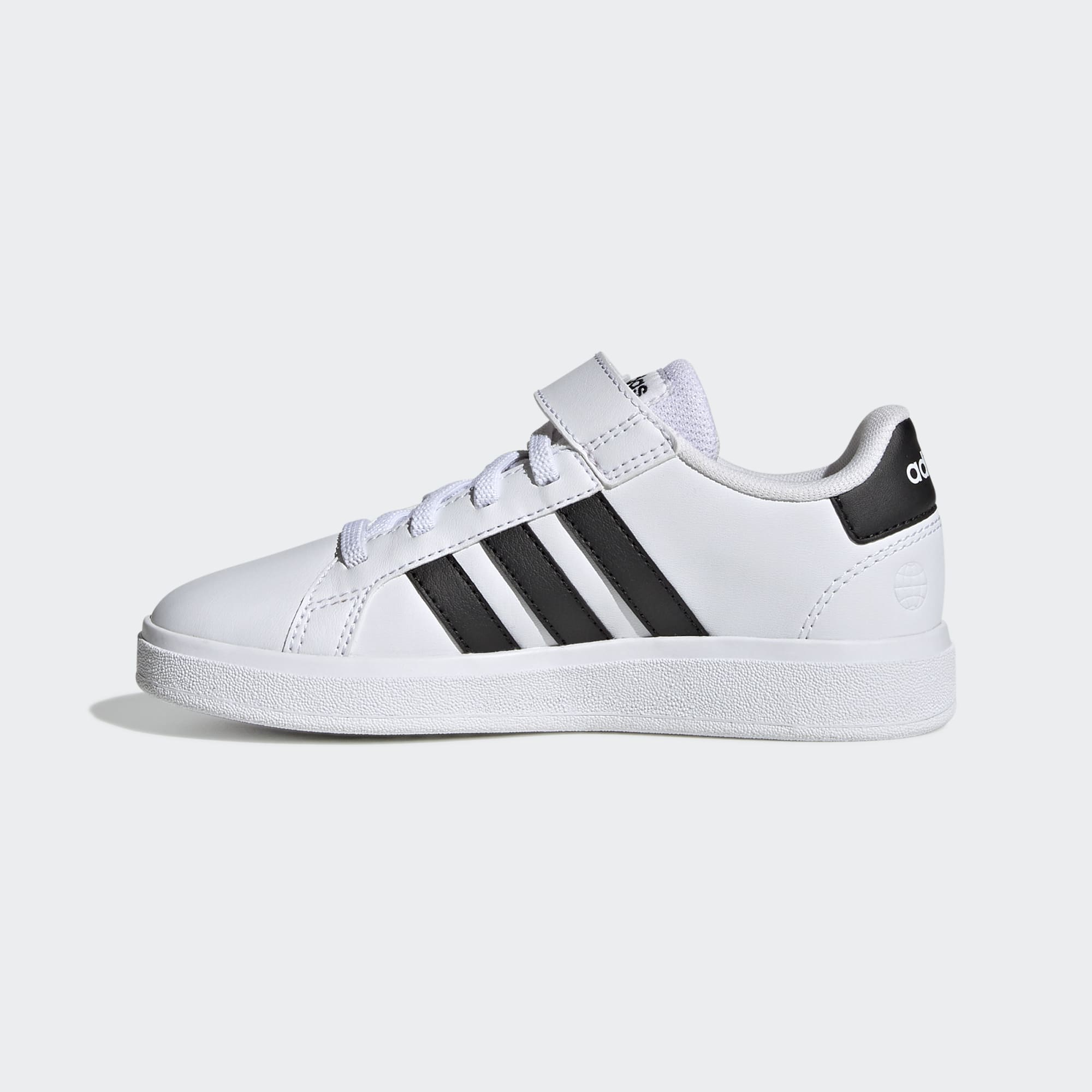 Det er aldri for tidlig å bygge opp sneakers-kolleksjonen til barna. Gå hardt ut med disse Grand Court-skoene fra adidas, laget for barn. De kommer med robust og fleksibel koppsåle av gummi som støtter opp om hvert steg og hopp. Skoene lages med elastiske lisser som strekker seg når barna tar dem på, og borrelåsstroppen øverst kan de feste helt selv. Disse klassiske skoene blir ikke liggende lenge i esken.