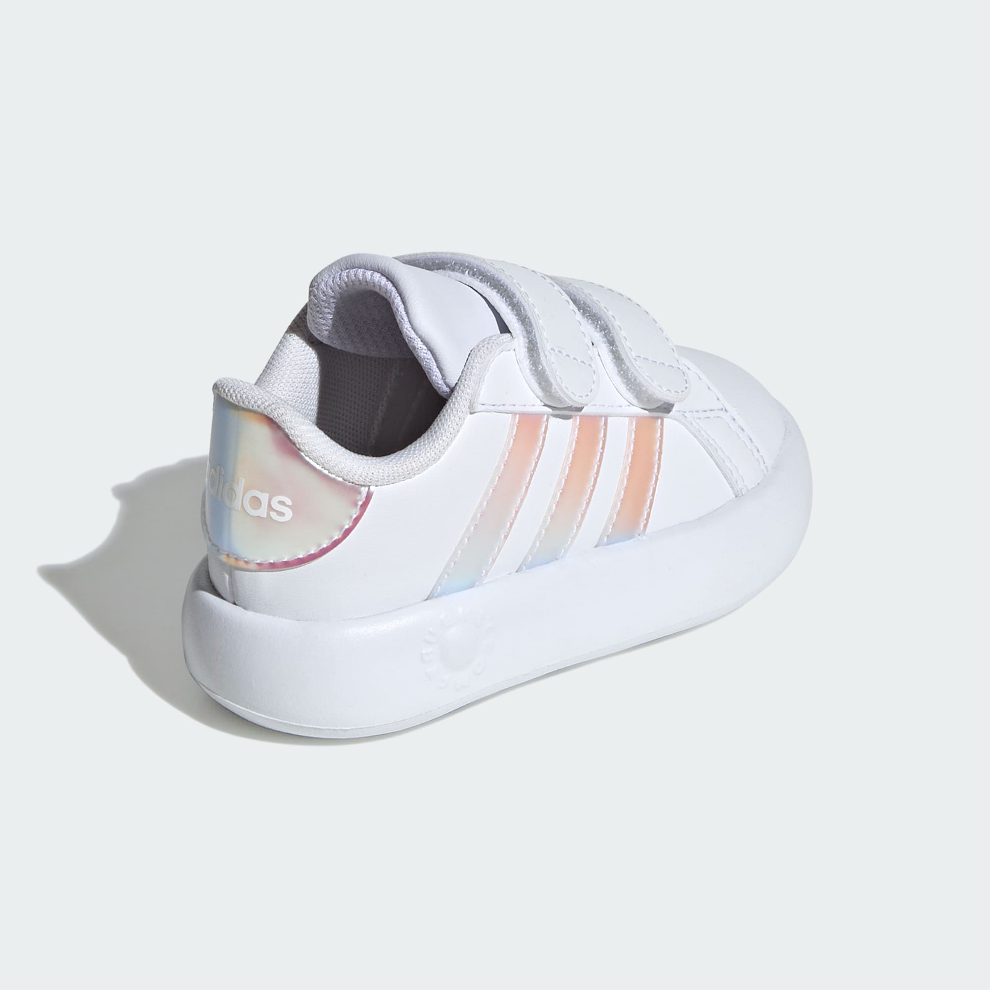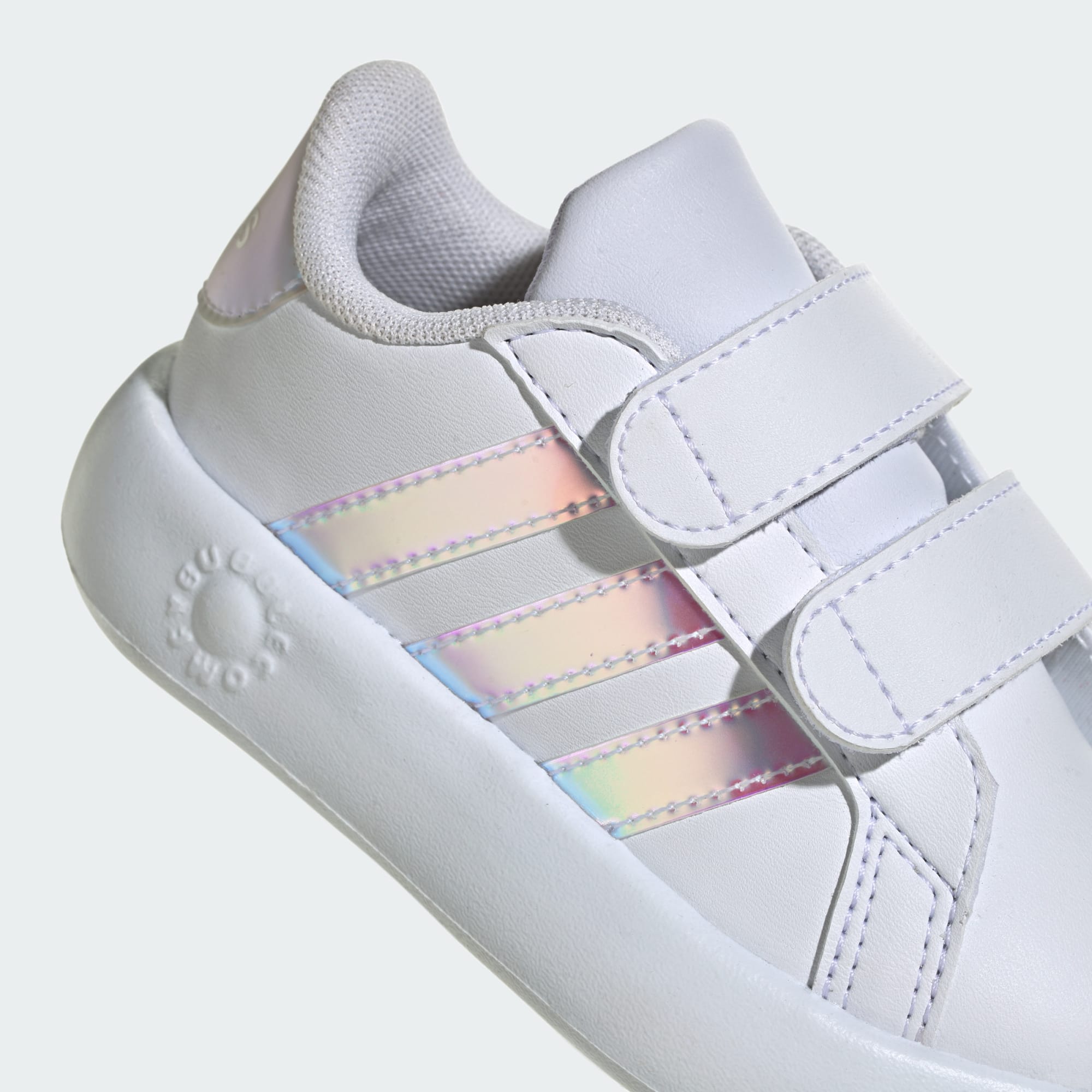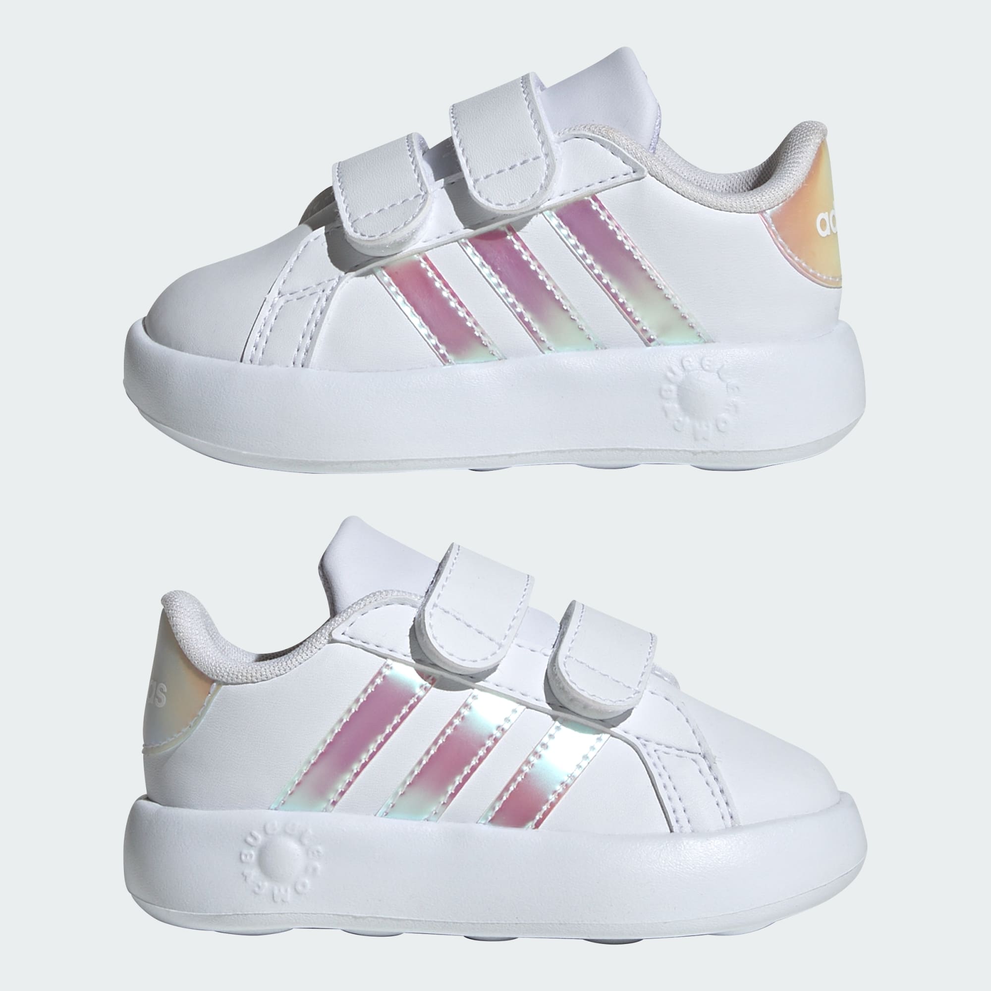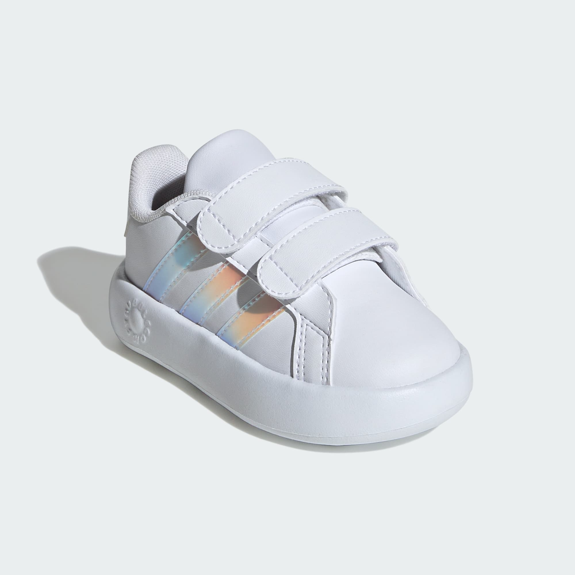 Disse adidas-skoene for småbarn er fulle av lek og moro for de minste. Borrelåsstroppene gjør dem enkle å ta av og på, mens den kombinerte EVA-mellomsålen og yttersålen i ett stykke gir dem de mykeste, mest dempede stegene. Enten de skal farte rundet på lekeplassen eller sprinte gjennom sprinkleranlegget, sørger den støttende overdelen og gripesikkert mønster for at føttene holder seg på plass.