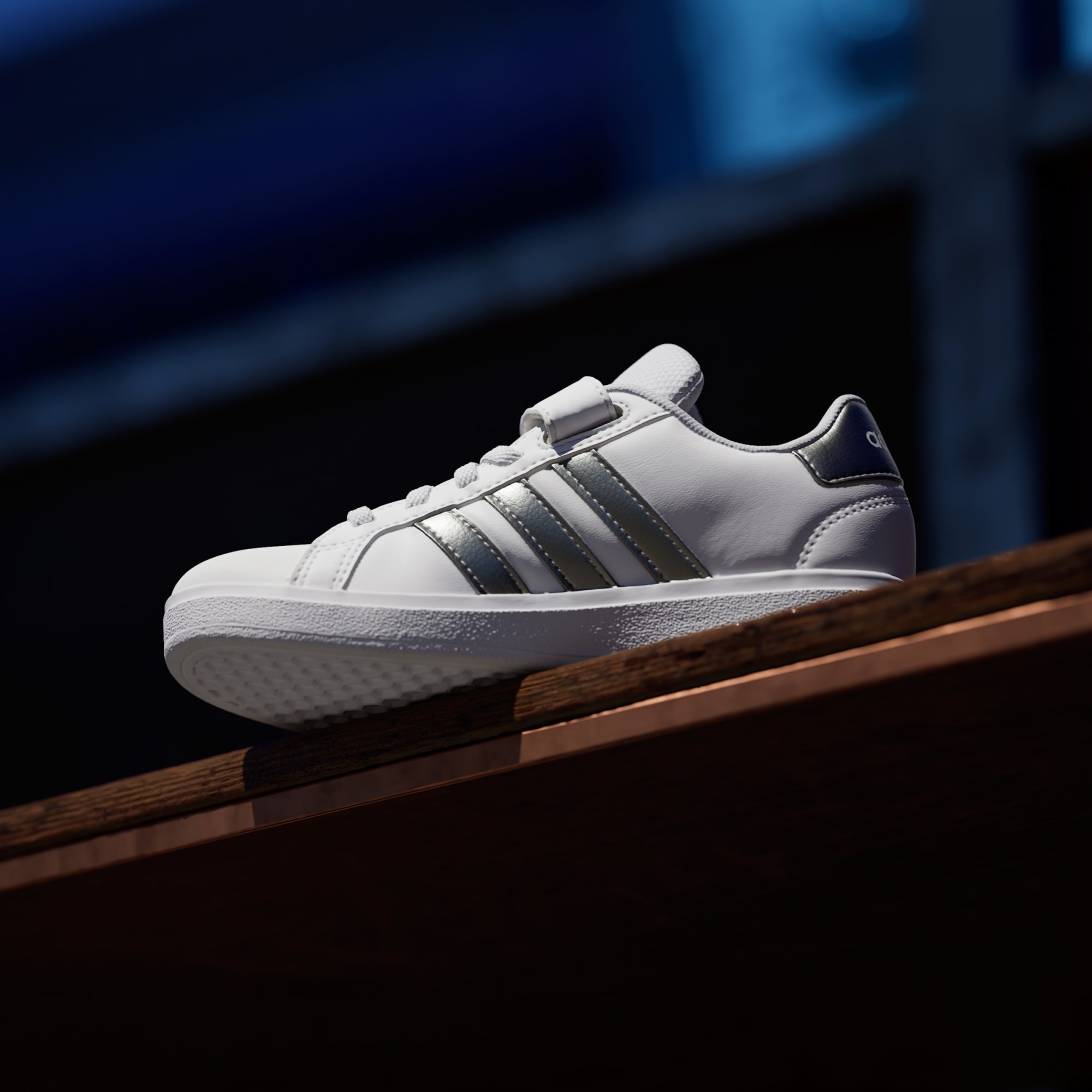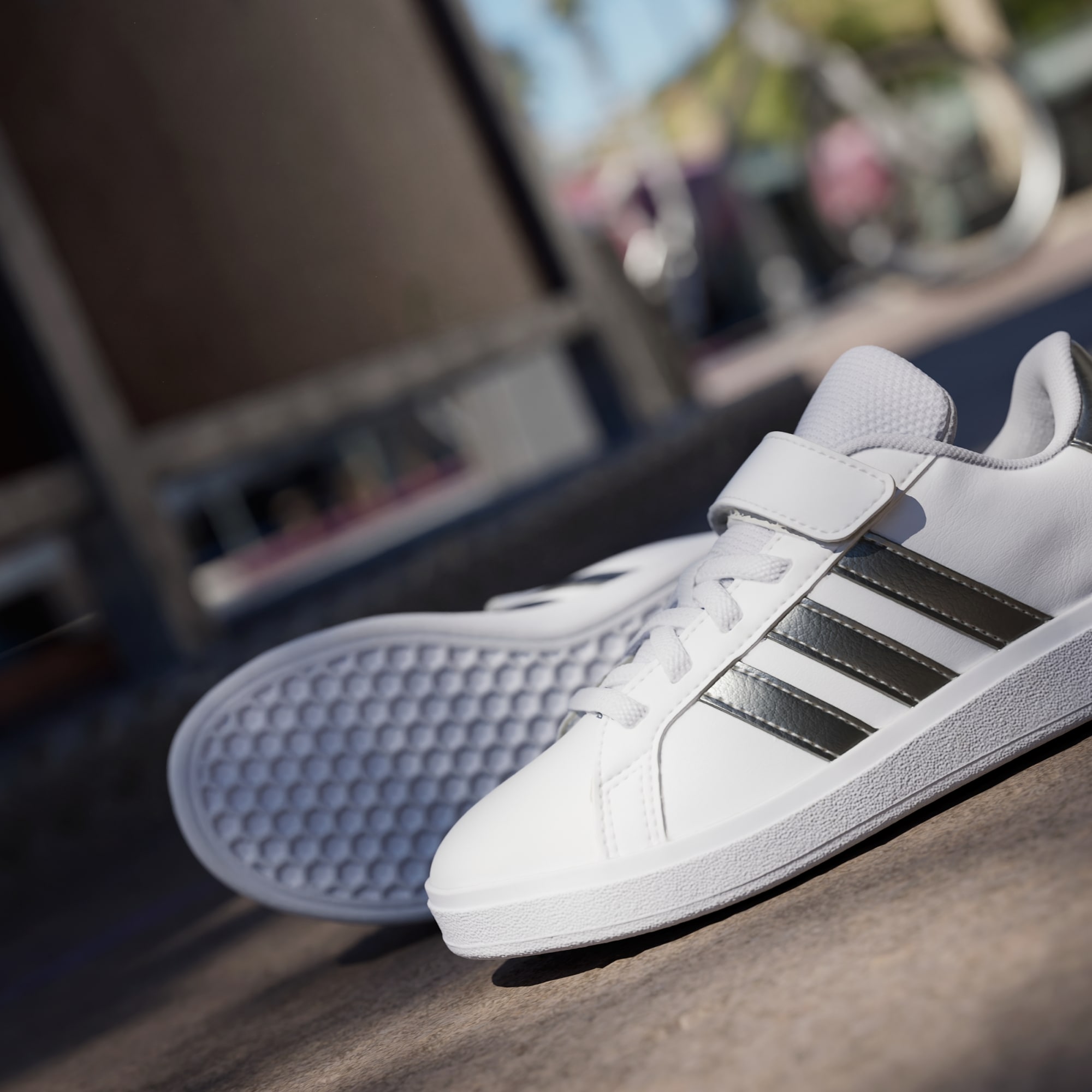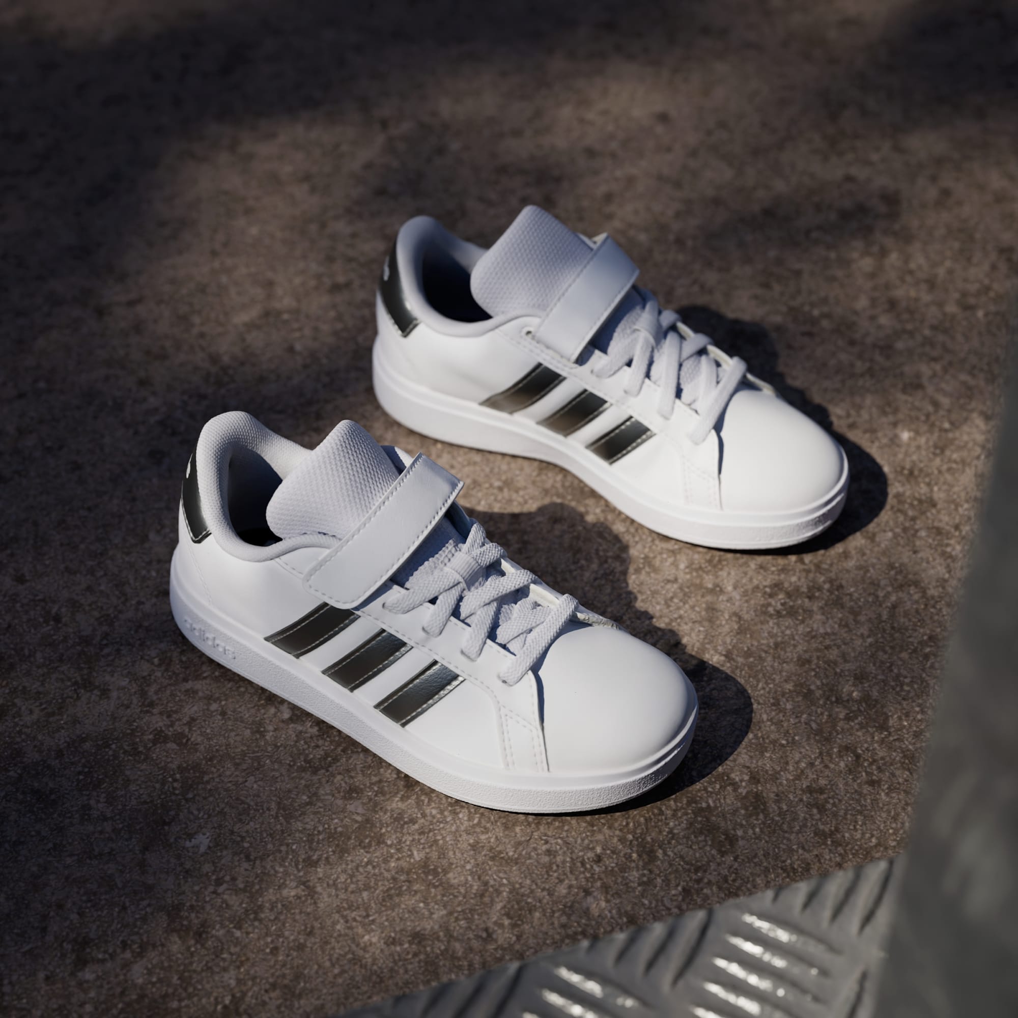 Disse adidas-sneakersene for barn holder dem i gang med klassisk og sporty stil, enten de skal ta en sykkeltur eller på bursdagsfest. Overdelen av imitert skinn fôres for en myk følelse, og signeres med ikoniske 3-Stripes på sidene. En fleksibel koppsåle i gummi gir nødvendig grep for barn i bevegelse.