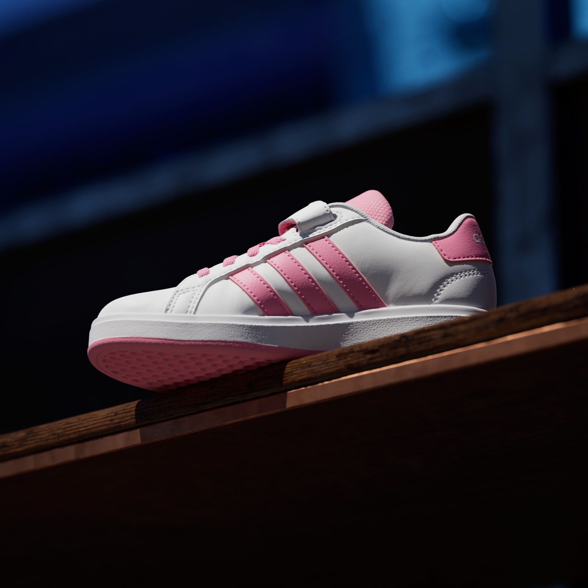 Disse adidas-sneakersene for barn holder dem i gang med klassisk og sporty stil, enten de skal ta en sykkeltur eller på bursdagsfest. Overdelen av imitert skinn fôres for en myk følelse, og signeres med ikoniske 3-Stripes på sidene. En fleksibel koppsåle i gummi gir nødvendig grep for barn i bevegelse.